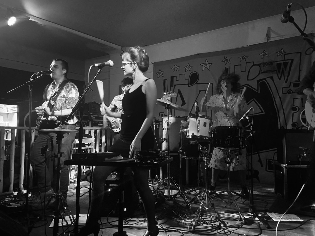 Having not one but two female percussion players is a bold move. That teemed with the fact that Thai Lee is not only standing up behind her drum kit but also dancing and at one point jumping enthusiastically at certain verses, whilst simultaneously swigging beer makes Bodega one of the most captivating live performances we’ve seen for some time.