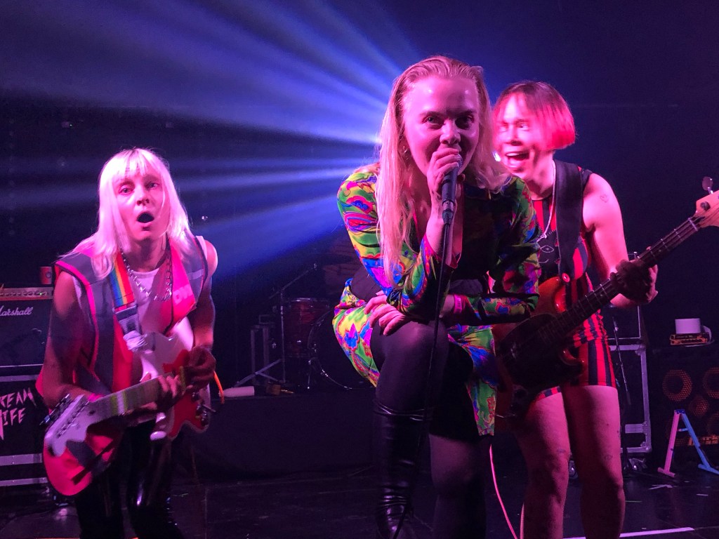 The Stag and Dagger Festival show in Edinburgh was riotous with lead singer Rakel Mjöll commanding the audience with her powerful voice whilst guitarist Alice Go and bassist Bella Podpadec bounced about the stage playing and dancing their hearts out. Rakel Mjoll at one point started a battle of the band – splitting the audience into halves and having them cheer support for either Alice Go or Bella Podpadec whilst they played their instruments and had an on-stage karate fight. Fans ate up every drop of the fun and were eager to join in or complete any command that was made of them.