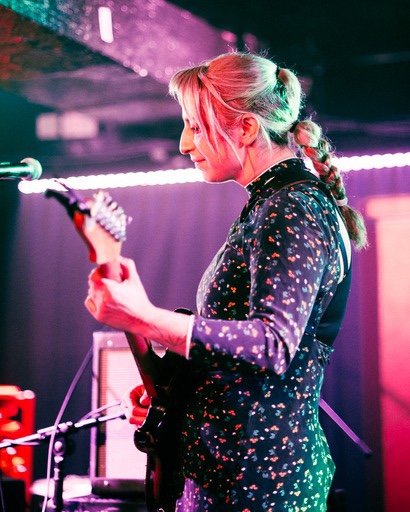 Between songs Cogan remarks that the ambience in Sleazy’s this evening is like something out of Twin Peaks. It’s easy to see what she means. At this point in the night the crowd is sparse, the usual posters that adorn the walls of Sleazy’s downstairs have been stripped away, revealing the rather nice red wooden panelling that walls the venue. With a light machine fog permeating the room, and the headliner’s 3-piece setup of drums, guitar and keys arranged in a sort of pincer motion halfway into the stage, I have to say it’s the best I’ve seen the downstairs of Sleazy’s look.