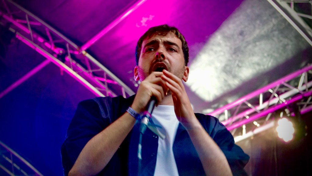 ILI took the stage next, delivering a set that was both soothing and soporific. Their mellow tunes and cutesy pop overtones offer a fun segue. If there was an award for bed dressed ILI would 100% be bestowed with this honour. She’s wearing a Cher from Clueless purple plaid two piece that is lined with Parma Violet feather cuffs. Her stage presence is effervescent and she seems genuinely happy to be performing, she beckons the audience closer to the stage to preview her latest single, “Gelato” which is much to the crowds pleasure. We also lived tracks, “It’s Giving” and “2 Cool 2 Be Sombody”.