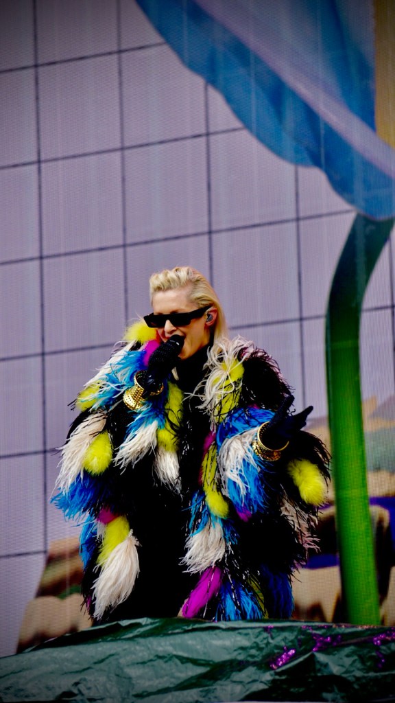 Alison Goldfrapp emerged looking resplendent in her multicolored feather jacket, defying the blistering heat with an aura of unflappable cool. Her performance was a dazzling spectacle, with a group of backing dancers emerging on stage one by one opening up the experience like the flower blossom visual background, it was a journey through all the fan favourites like; “Train”, “Oh La La La” and “Digging Deeper” showcased her synth-pop landscapes that had the audience in raptures. One could only marvel at her ability to stay fabulous while everyone else wilted under the sun.