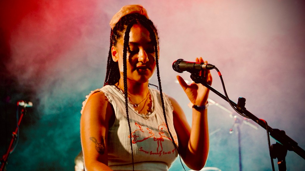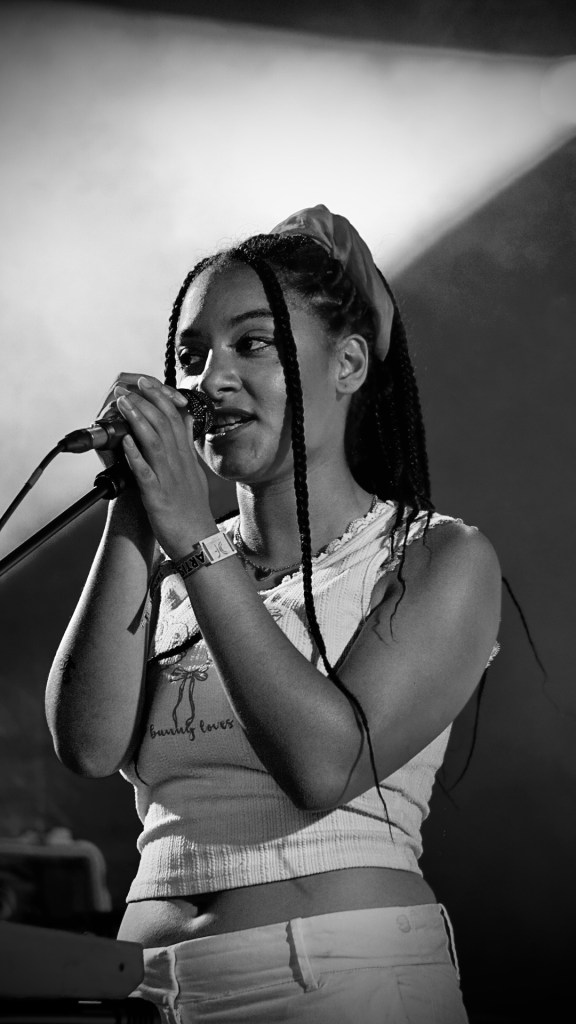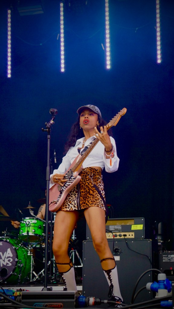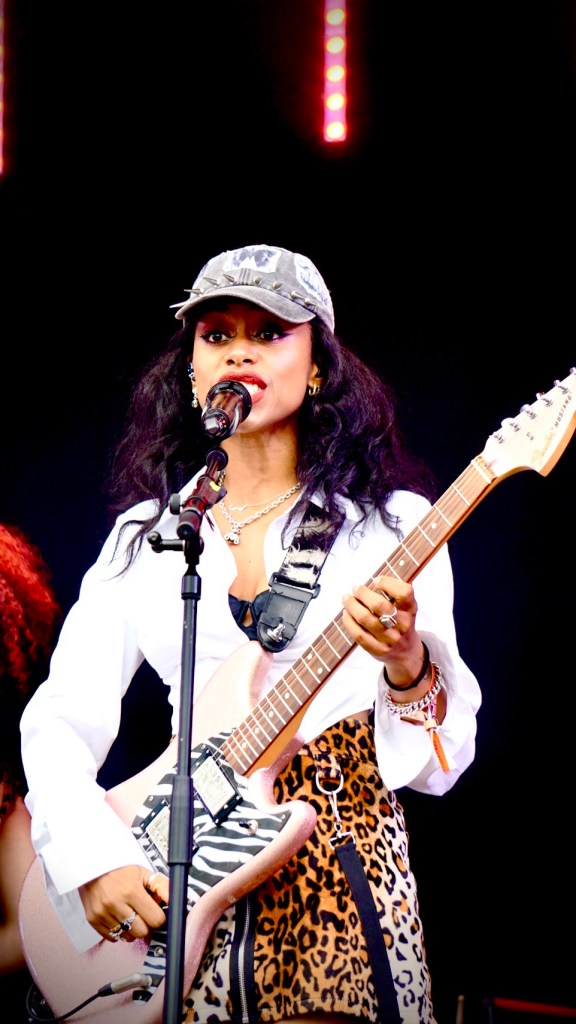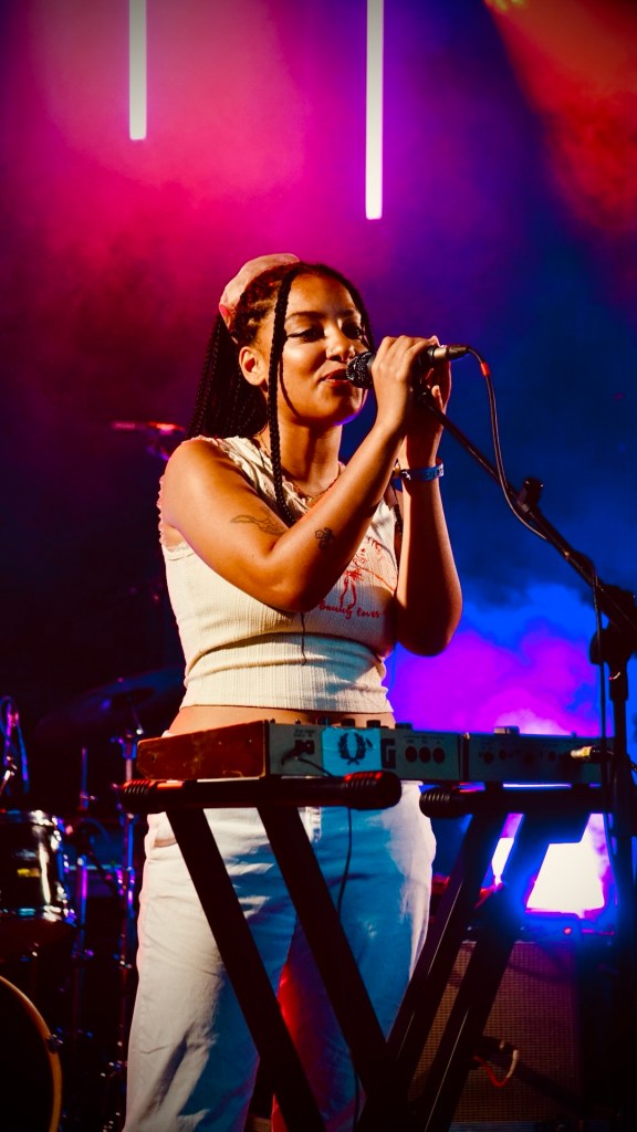 Rachel Chinouriri‘s set was a soulful balm, her voice weaving effortlessly through the warm afternoon air. It was like receiving a long-distance call from a best friend, full of intimate confessions and heartfelt melodies. Tracks like “Never Need Me”, “The Hills” and “All I Ever Asked” cement her status as BFF girl next door. She held the crowd spellbound, each song a story that left you wanting more.