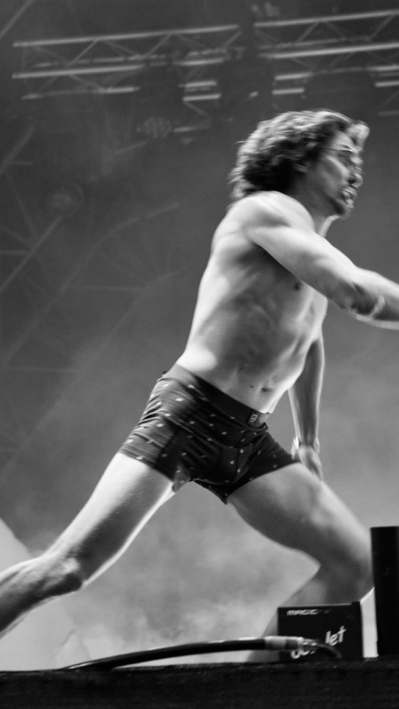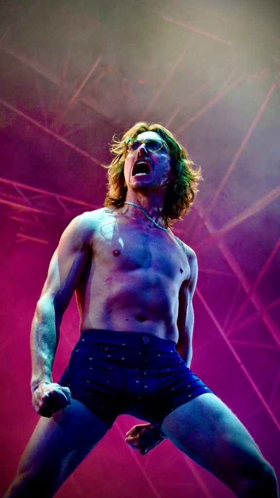 Marc, bounded onto the stage in his signature boxer shorts and boots—because why would a man wear anything else when he’s about to unleash an evening of musical mayhem? His entrance was nothing short of a jailbreak, with Rebillet darting from one end of the stage to the other, as if he was fleeing from the very confines of his own sanity.