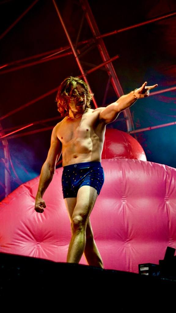 That’s not to say the show lacked its moments of brilliance. One highlight was when Marc, mid-performance, snatched a red lace jacket from a fan and made a grand show of slipping into it, before plunging back into the audience, high-fiving and hugging his way through the crowd like a deranged, affectionate messiah.