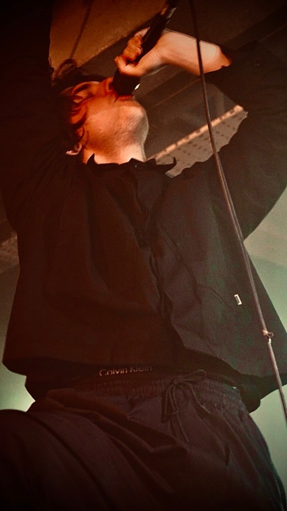 Frontman Ross Cullen is a sight to behold. Imagine Ian Curtis reincarnated and sent to a modern rave, his moves a mix of desperate flailing and deliberate possession. Cullen’s voice, raw and urgent, seemed to claw its way out of his chest, while his hair – a glorious cascade of volume – danced along with him like a co-star.