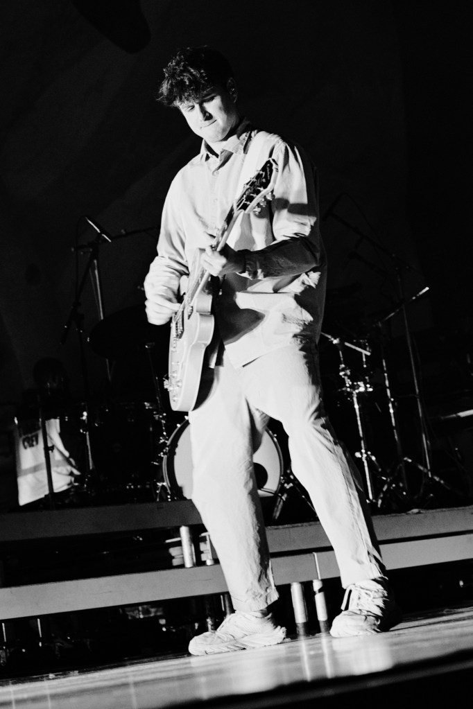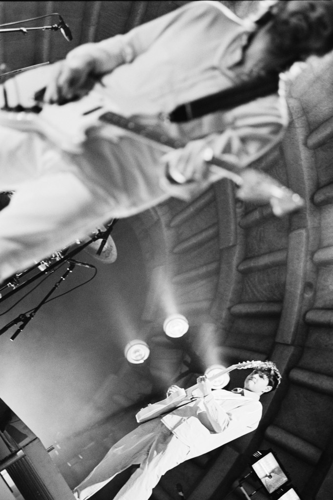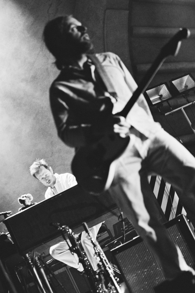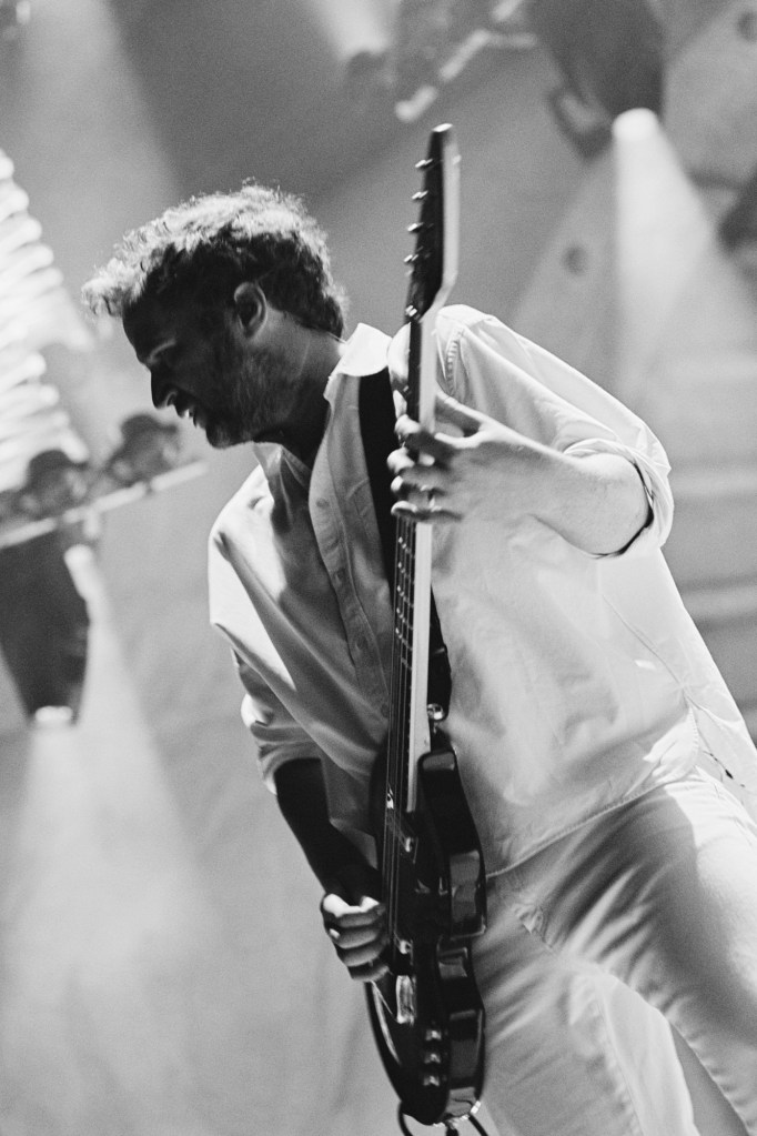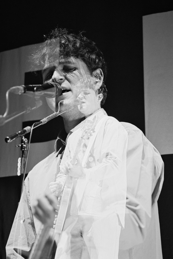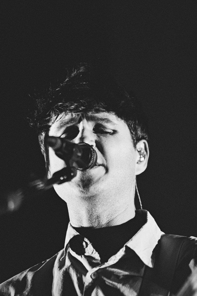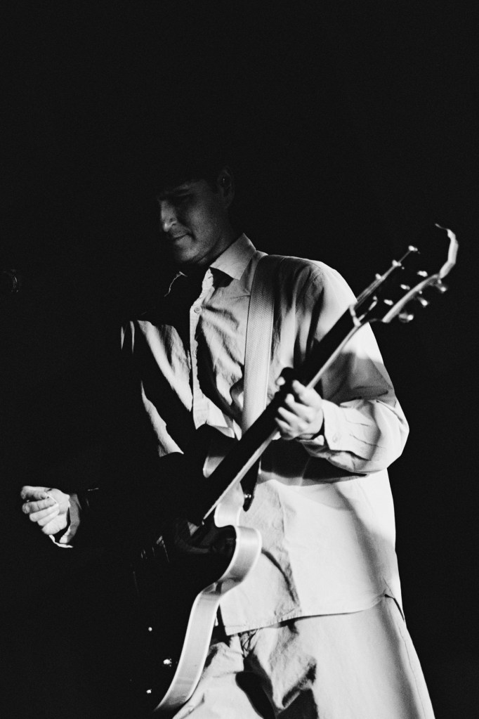 Tonight, the band starts the show as the three remaining original members, opening with a handful of their earliest songs, set against a plain backdrop bearing only their name. This stripped-back start quickly bursts into a fuller, seven-piece setup, as the band’s sound widens to accommodate the greater breadth of their new music.