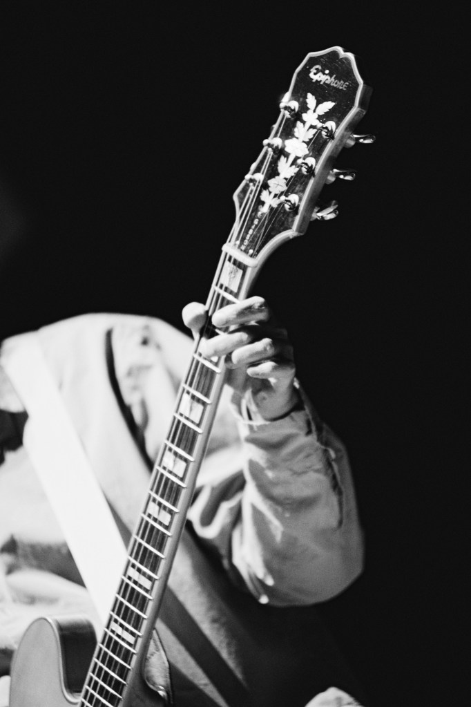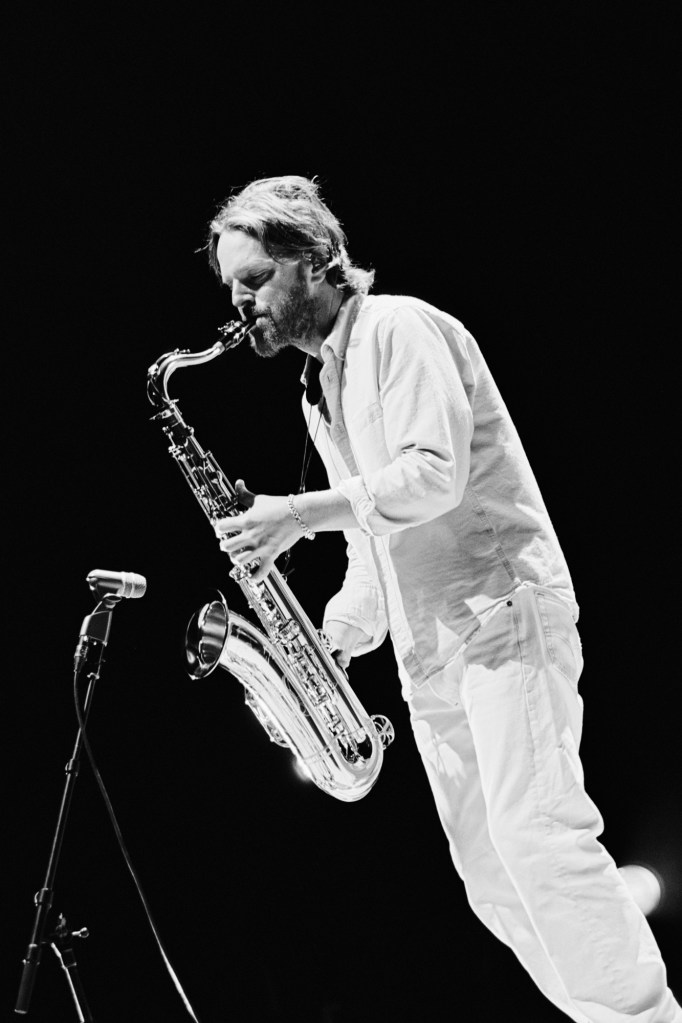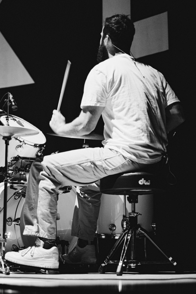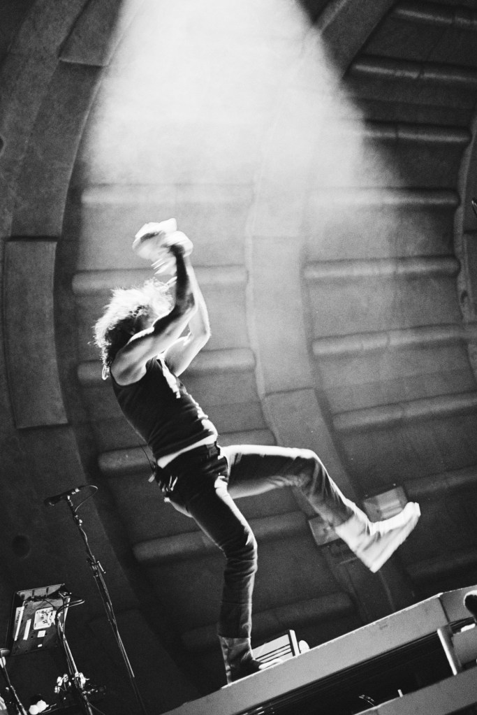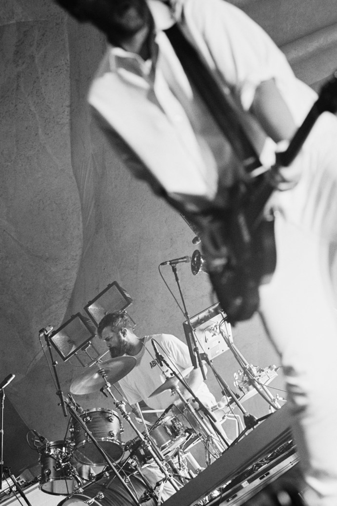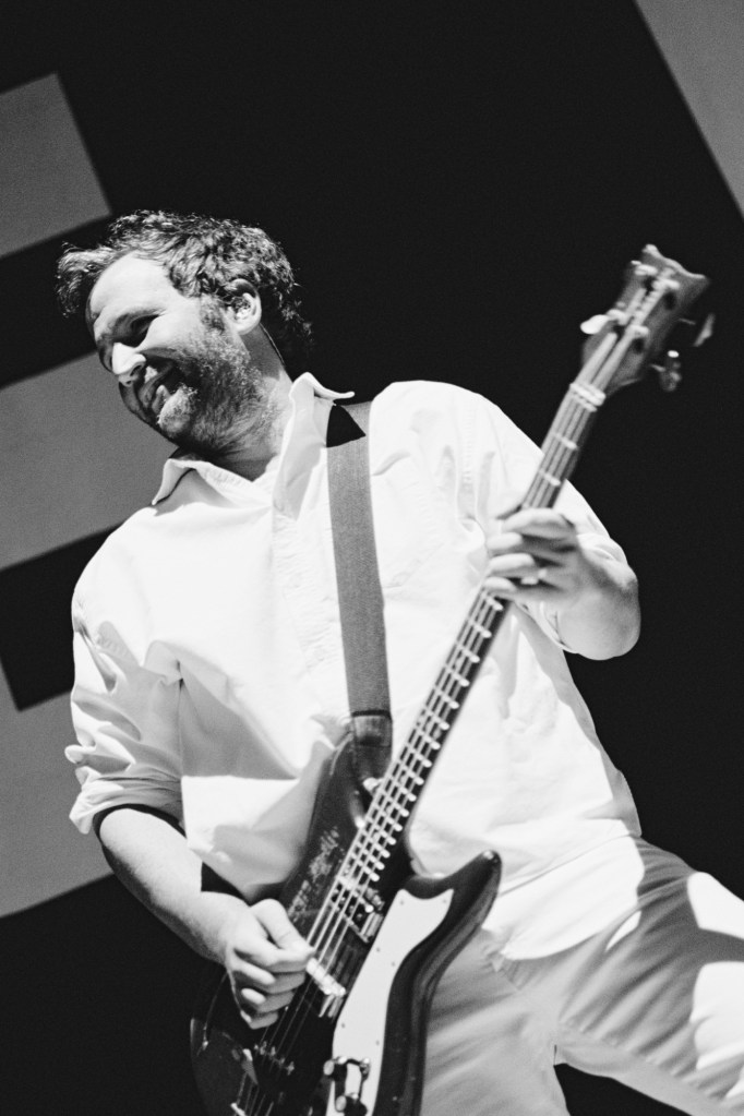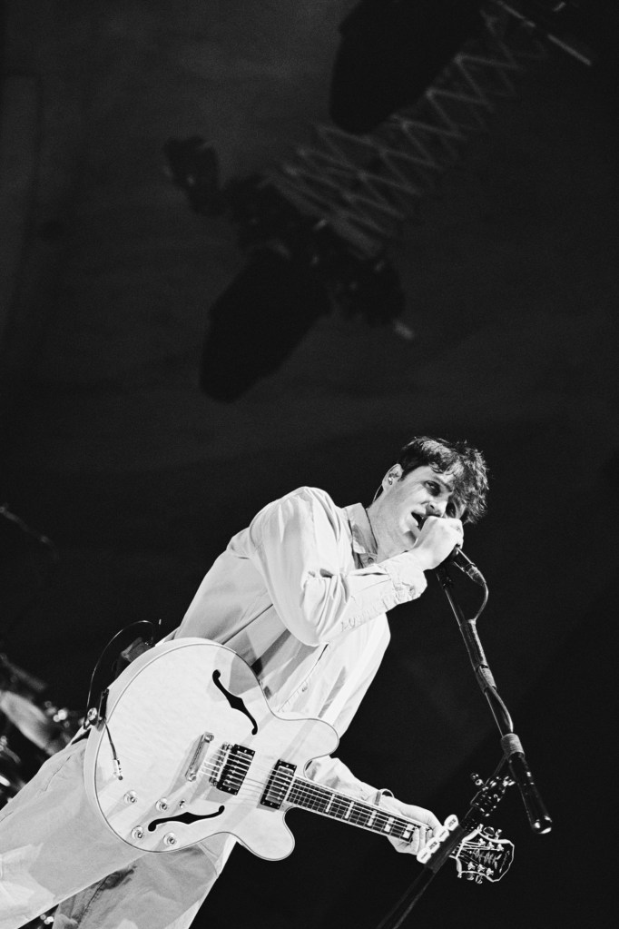 Tonight, the band starts the show as the three remaining original members, opening with a handful of their earliest songs, set against a plain backdrop bearing only their name. This stripped-back start quickly bursts into a fuller, seven-piece setup, as the band’s sound widens to accommodate the greater breadth of their new music.