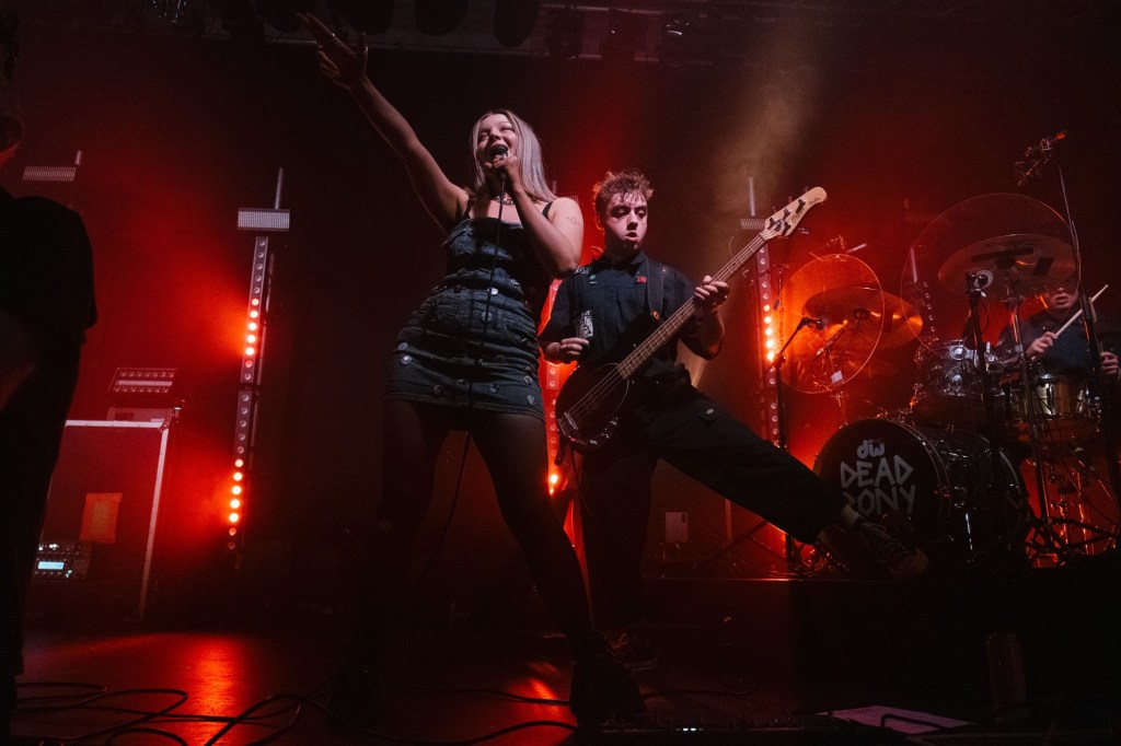 By the time Dead Pony hit the stage, the crowd was absolutely feral – in the best way. Opening with “Ignore This,” they made it clear that months of touring hadn’t dulled their edge one bit. Lead singer Anna Sheilds beamed ear-to-ear as she confessed it had been a lifelong dream to play the QMU, let alone sell it out. The band’s energy was infectious, with tracks like “About Love” and “Rainbows” showcasing a versatility that ranged from angsty punk to dreamy alt-rock.