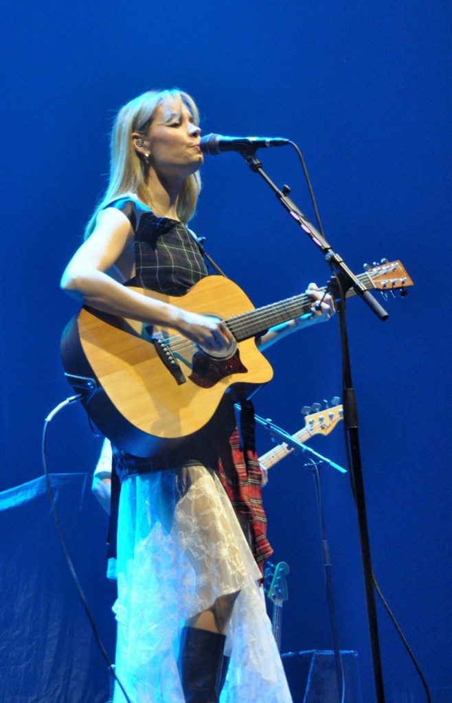 Resplendent in a flowing white dress and tartan repurposed from a recent Burns supper, Nesbitt’s set was defined by her impressive use of alternately tuned guitars. While she admitted this approach made writing her latest album, Mountain Music, easier, she joked about the logistical challenges of touring with so many instruments. Nonetheless, her seamless transitions between them showcased her artistic prowess and songwriting skills, particularly on the tracks from this new album that dominated her support slot.
