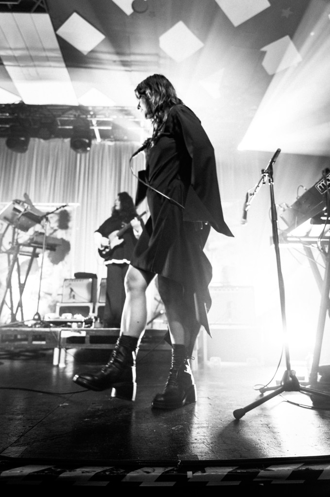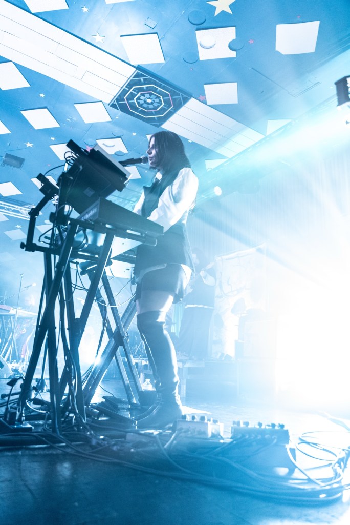 Sharon Van Etten brings a magical atmosphere to the Barrowland Ballroom, starting her set with raspy yet beautifully smooth vocals in Live Forever—a synthy, futuristic-sounding track that builds anticipation and questions the nature of time. The band are all dressed in black, contrasting with the light-toned abstract artwork displayed behind them. The crowd appear calm and happy as they sway.