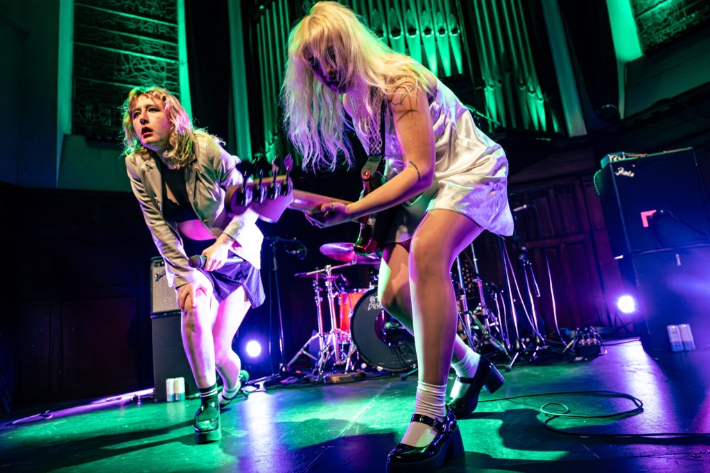 When Lambrini Girls stormed the stage, they brought with them a tidal wave of Big Dick Energy (track title and the general swagger they endorse) opening with tracks from their new album Who Let the Dogs Out.