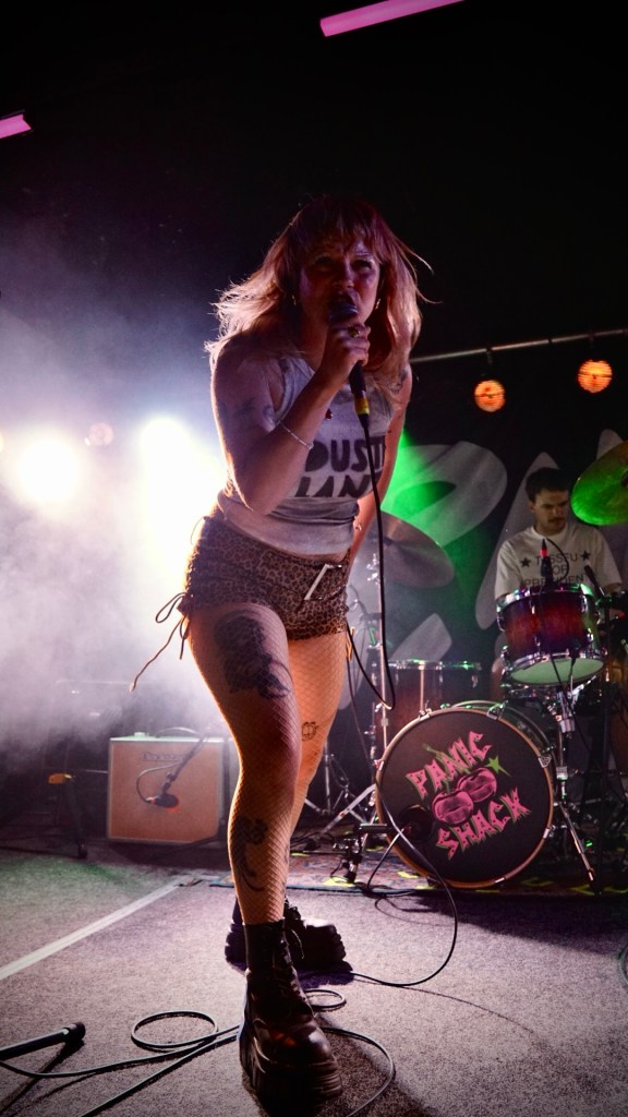 There’s plenty of chanting to “Free Palestine” Panic Shack don’t do performative politics, they live it. Panic Shack aren’t just singing about womanhood. They’re building a sweaty, subversive, glitter-coated movement in Doc Martens and ironic mullets.