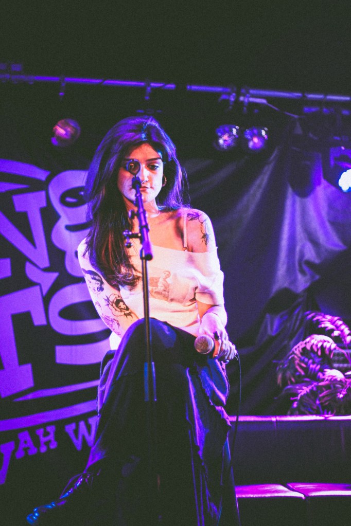 Then came Kenzie, joined by John on guitar—a duo that lit up the room with admittedly a much more stripped back version of their band Bottle Rockets we loved the track “Video Call.” Think PJ Harvey with emo and folk undercurrents: emotionally charged, slightly punky, always tender. Their closer, “Community Service,” was part confession, part anthem—the kind of song you want playing when the credits roll on your indie film.