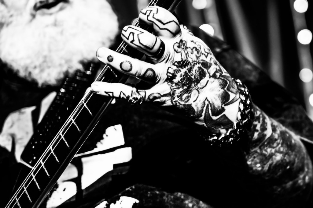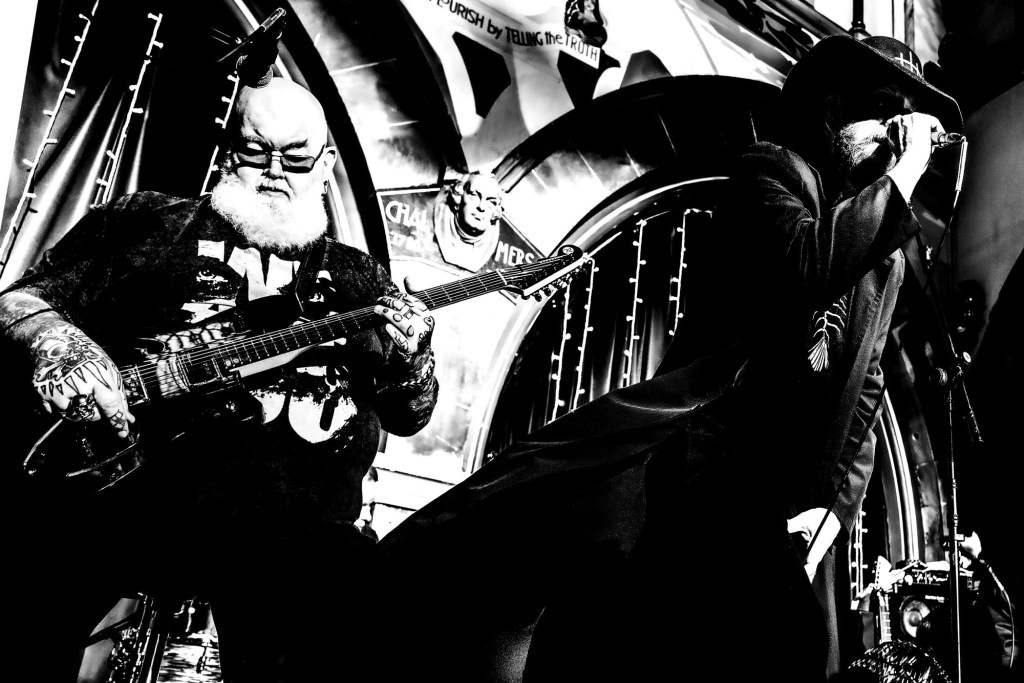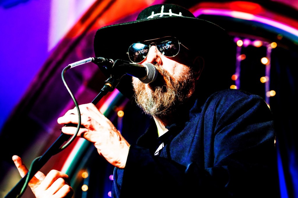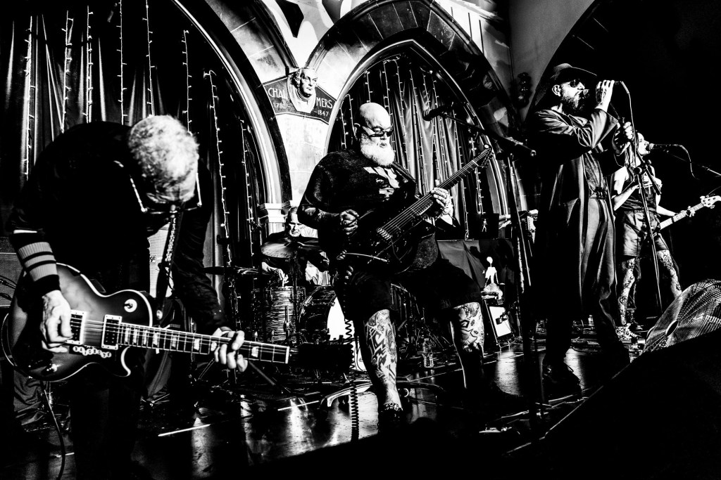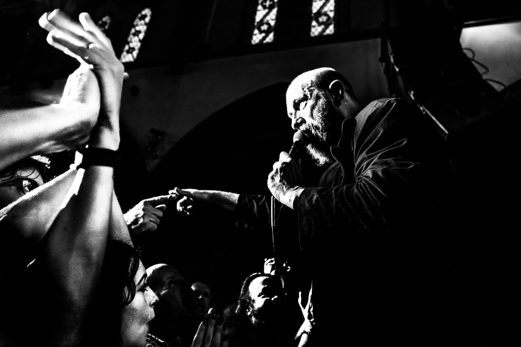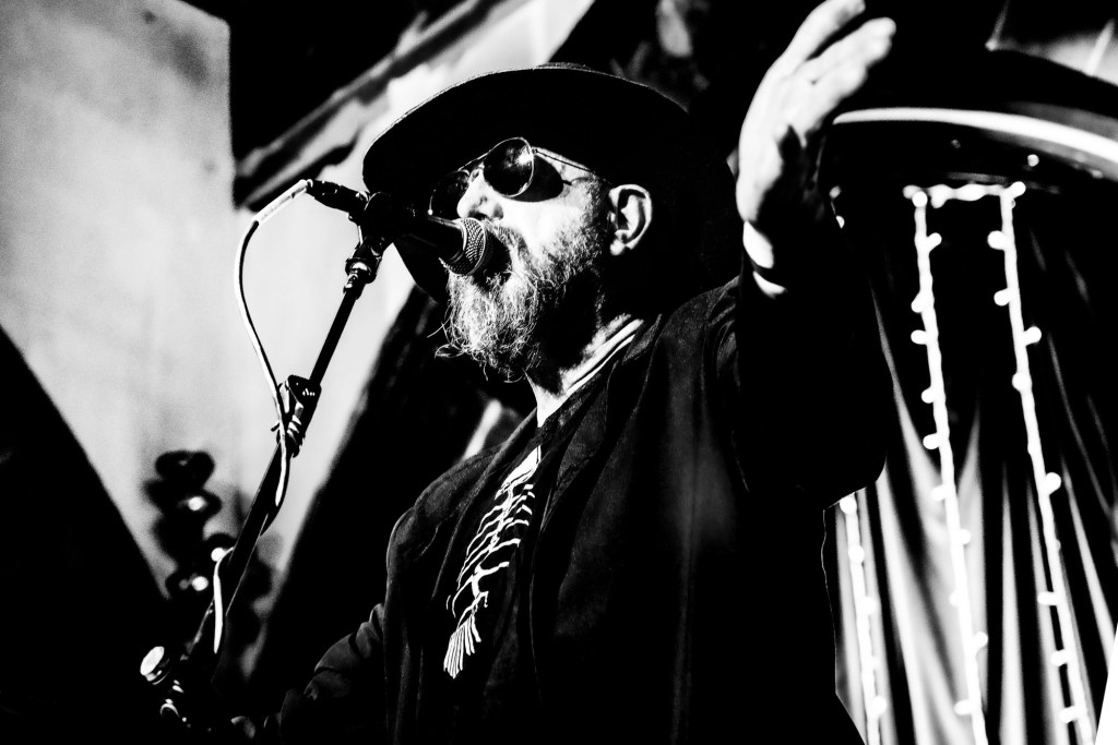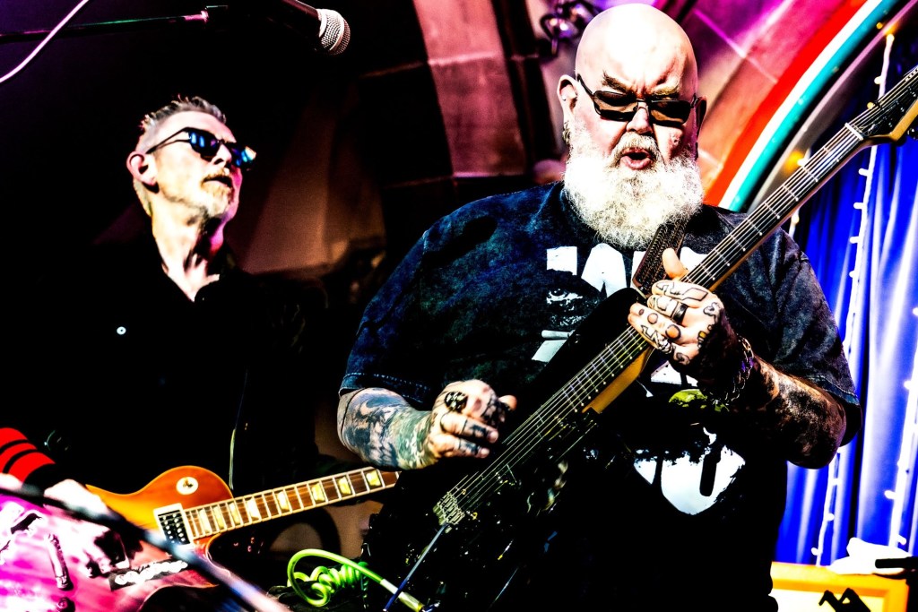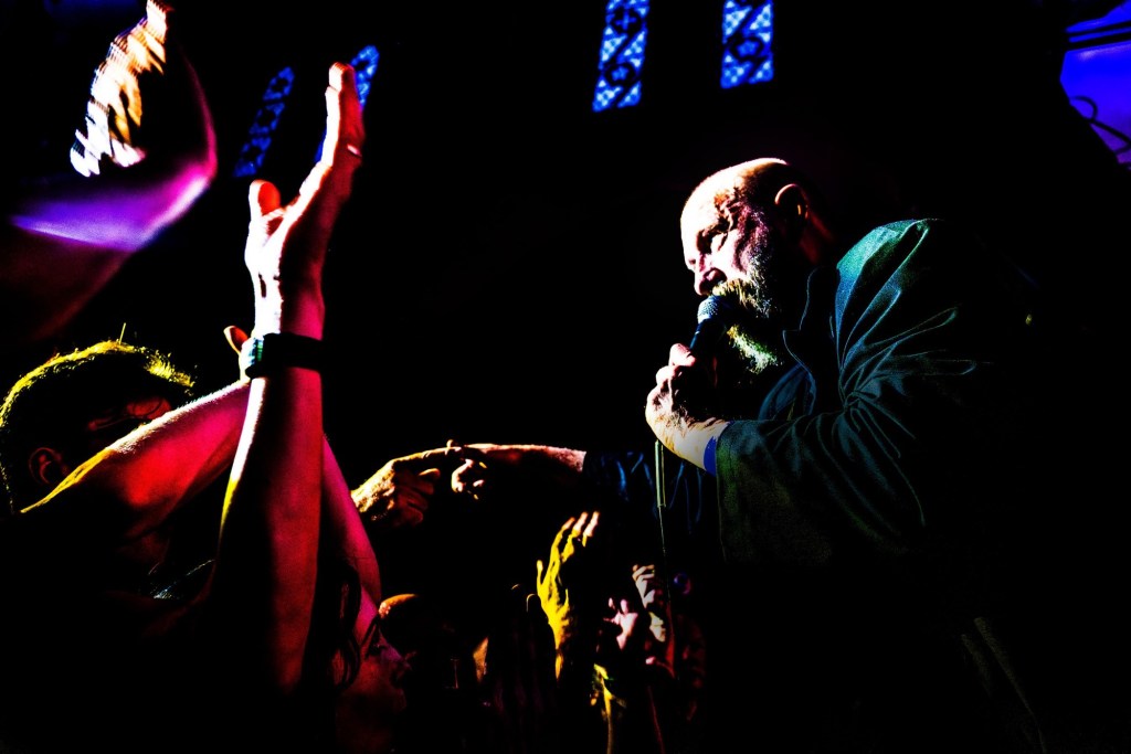 The crowd, simmering with anticipation, breaks into a chorus of raucous approval as the band slowly take their positions and launch into a menacing version of ‘Hands of the Receiver.’ Martin, leading from the front, ever enigmatic, with arms outstretched, taking in the adulation or maybe giving thanks. Big John doing what he does best, delivering searing and at times supersonic guitar riffs. It is remarkable that the band is made up of all but one of the original band members, with Fin and Derek providing a pulsating, beating heart, and Rona, an almost era-defining layer of keyboards.