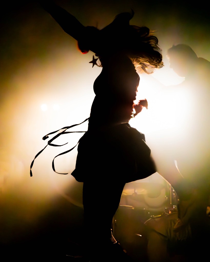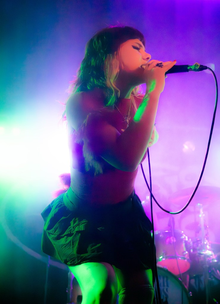 Next up was Roller Disco Death Party, a duo that shifted the energy sharply toward electronic territory. With Amelia on the drums and Neal driving thick electronic beats on the synth, their set pulsed between pounding rhythms and more chilled moments. As they finished, the crowd was noticeably sweatier and anticipation for the headliners was building.