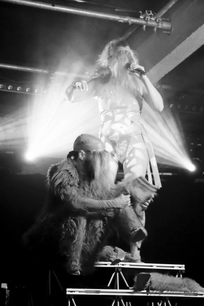 At one point, Glasgow does what Glasgow does best: chants “here we, here we, fucking go.” Peaches, grinning, mishears it—wants to hear it—as “hairy, hairy fucking boobs,” which, given the outfit, feels spiritually accurate. It’s a moment that captures the entire evening: mischief, miscommunication, mutual complicity. The crowd laughs, but also leans in. This is her language.