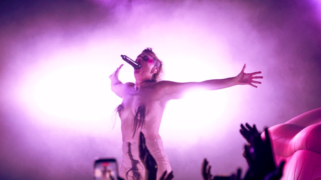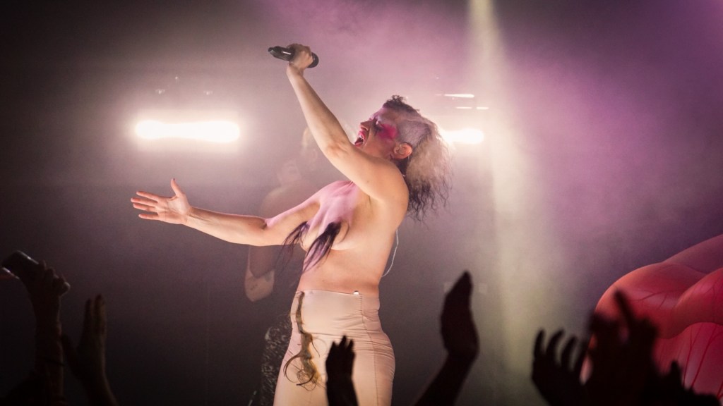 Support comes from Bimini, who sets the tone early with a performance that leans into the same anarchic glamour. Later, during the encore, Bimini returns for “Fuck the Pain Away,” turning an already feral crowd into something approaching ecstatic combustion. They stay onstage afterwards, dancing like a high priest of chaos, sealing the night with a sense that this is less gig, more shared uprising.