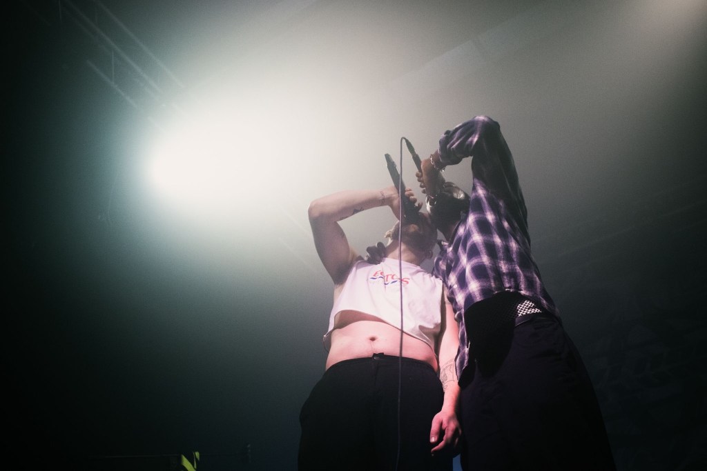 Something Real follows in a storm of strobes and sweat, and when P Sweatpants barrels onstage — the human equivalent of a mosh-pit starter pistol — the room erupts. It helps that the track has just landed on the latest FIFA soundtrack, which half the crowd apparently still plays; the place moves like a loading screen exploding into life.