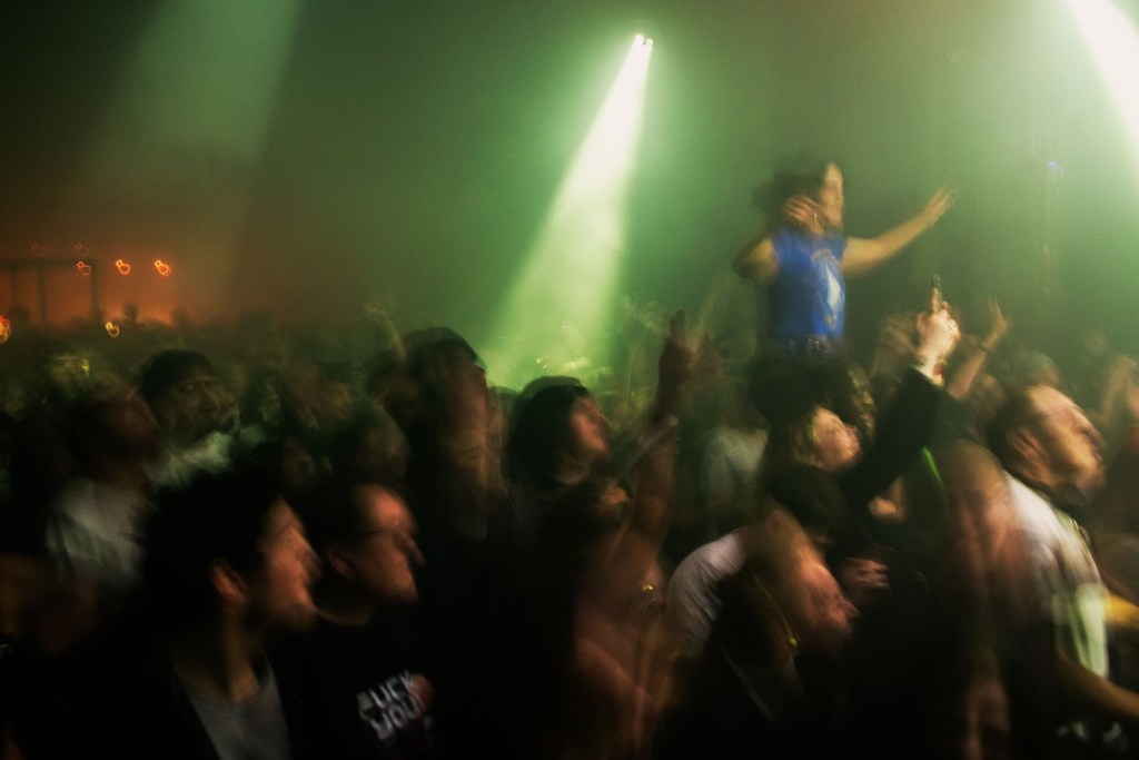 Opening with Axis of Evil, the crowd instantly begins a mosh pit that rages for the entire set. I doubt the venue has ever seen so many crowdsurfers, as not a single song passes without someone being launched into the air and carried overhead by friends. By the night’s end, some attendees are seasoned professionals, having been eased back to ground by security more times than I can count. Steen greets many of them mid-air with a handshake, drawing guttural cheers as they exit the pit.