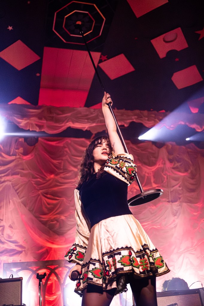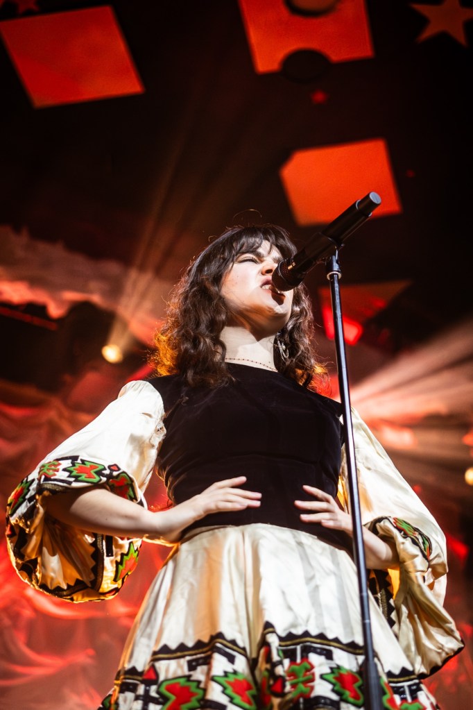 The Barrowland was fully packed right before nine; the excitement was a continuous crescendo, and the temperature was steeply rising. Emily, Georgia, Aurora and Lizzie took their positions, smiling at the cheering crowd. This time there was someone else too, sitting behind the drums, and his name was Luca. And then Abigail Morris jumped onto the stage, spinning and bowing, and started singing the first song from their new album From The Pyre, Agnus Dei,” followed by “Count The Ways.” After these, Abigail introduced every member of the band and brought us back to the last tour, kicking off with “The Feminine Urge” and “Caesar on a TV Screen.”