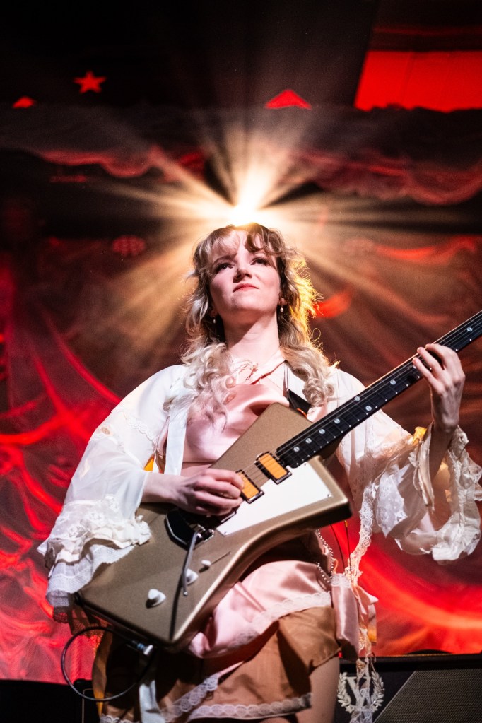 Before a note was struck, the whole room felt like the prelude to a séance: strobe lights twitching like they were trying to contact the spirits of Riot Grrrls Past, and Rhian Teasdale swishing her strawberry-blonde hair with the casual menace of a witch who’s just learned the hex for “mansplain.”