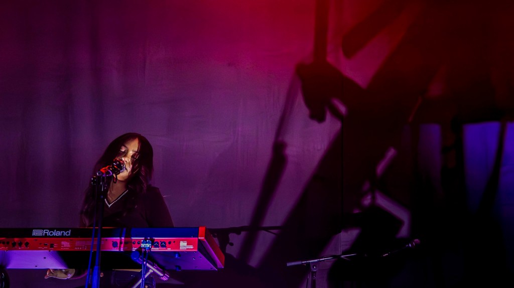 The band played twenty songs in total, and each one of them was a joy to experience. Aurora Nishevci sang “Gjuha,” opening the act by talking about the importance of languages and cultures. Lizzie Mayland — fresh from their solo debut EP The Slow Fire of Sleep — and Georgia Davis showed us their vocals, while Emily Roberts did what she does best with her guitar, and Abigail Morris followed them on the piano.