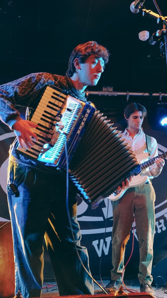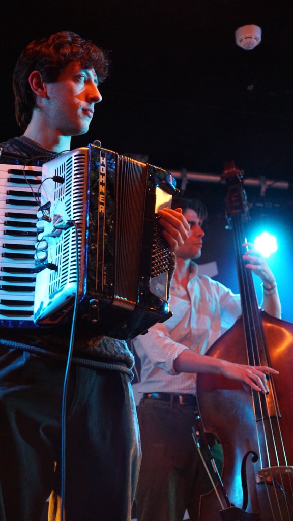Their sound is built from deceptively quaint components: harmonica wheezing like an old busker with secrets, double bass thudding warmly (played with the kind of physical affection usually reserved for lifelong pets), accordion and flute weaving around each other like they’re flirting at a village fête. It’s a barrel full of twee joy — the kind that would absolutely kill Tinker Bell on sight if she tried to gatekeep it.