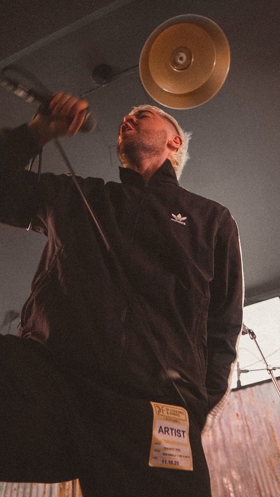 Leeds’ Adult DVD opened the day like a synth apparition — chrome-plated and ice-cold, a Factory Records lovechild raised on a diet of irony and tinned lager. Their “Bill Murray” track glistened like neon through a smog of church incense. Imagine New Order if they’d been trapped in a laser tag arena with DMA’s and a bad hangover — that’s Adult DVD: sterile, shimmering, and slightly sinister.