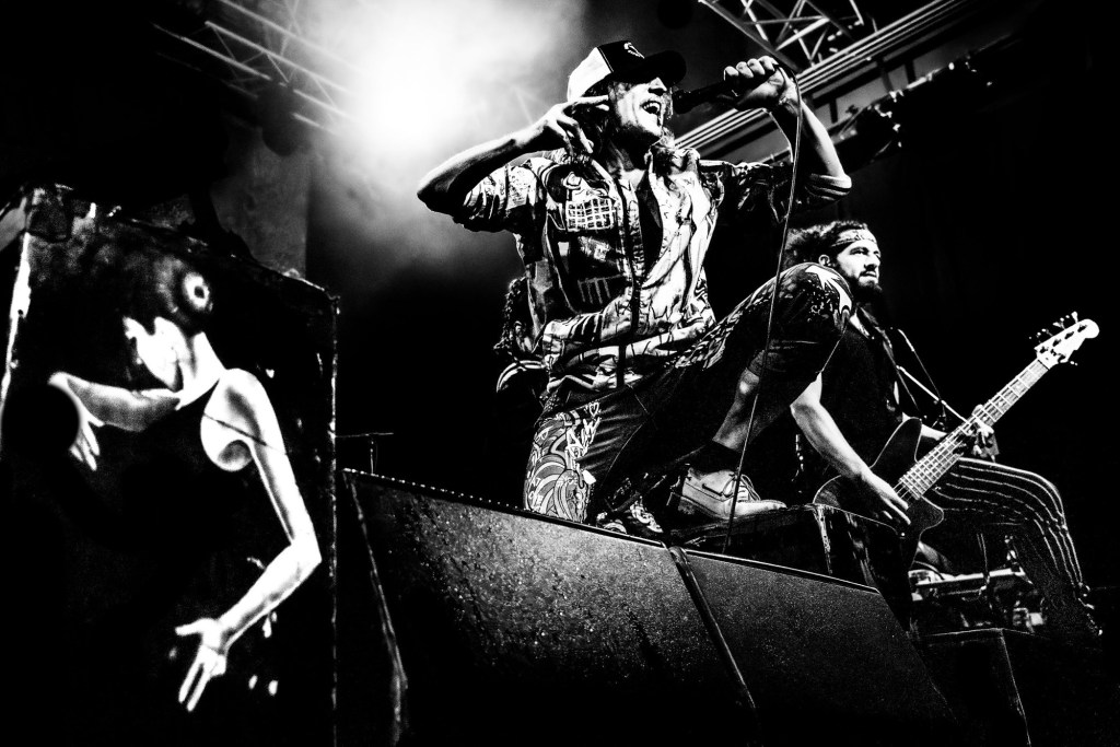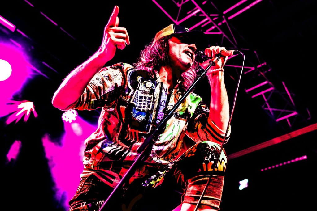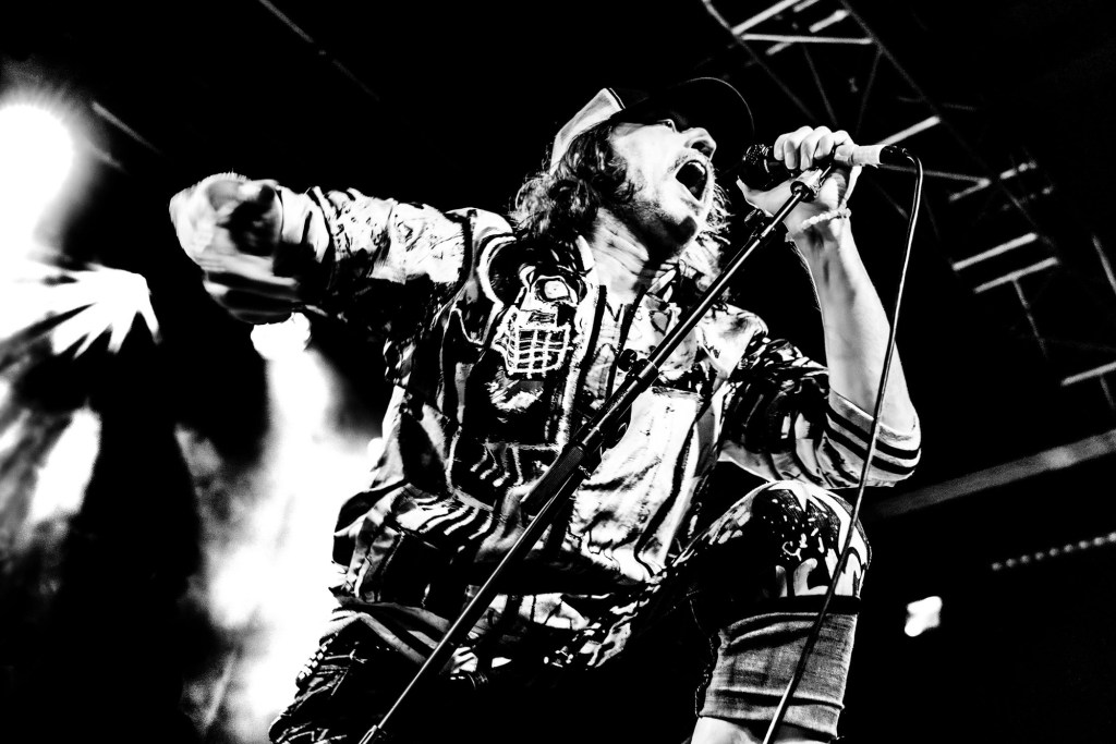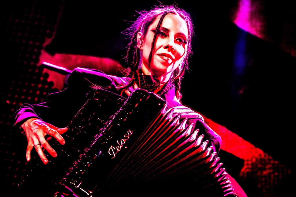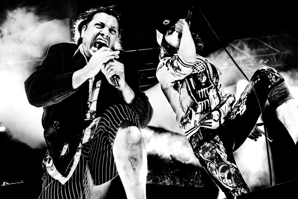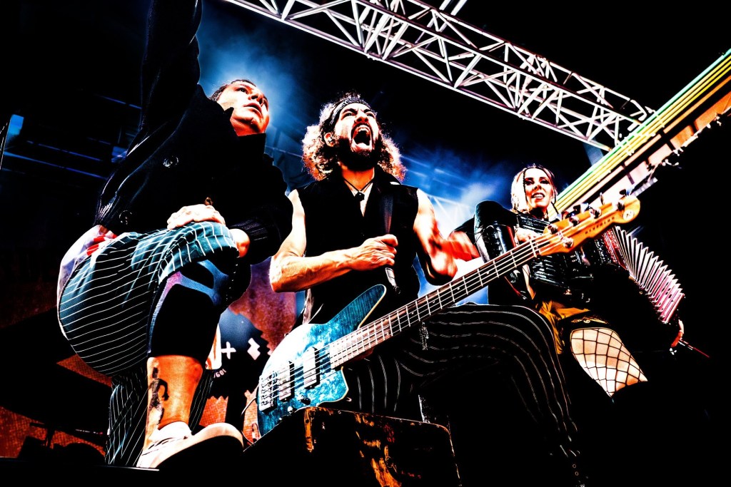 Gogol Bordello literally invade the stage, which suddenly seems too small to contain them. Sprinting towards the cheering crowd, Eugene slams down a bottle of what I thought was Buckfast—turns out to be Cabernet Sauvignon. It erupts over photographers in the pit, and the tone for the night is set. This is a full-blown visual and musical assault, especially when Pedro and Eugene combine to share vocals and deliver raga-rap as hard-hitting as it gets.