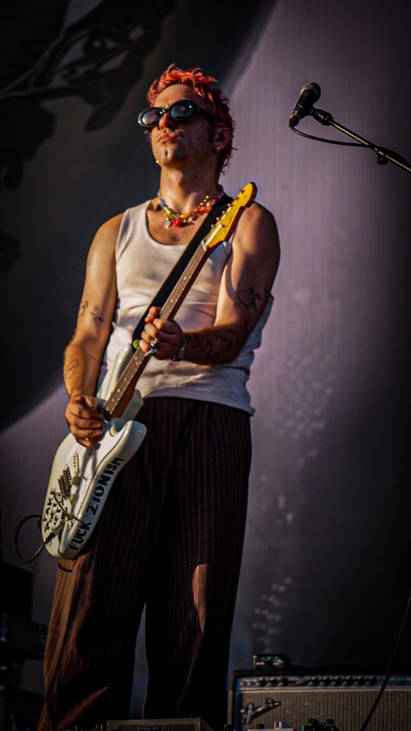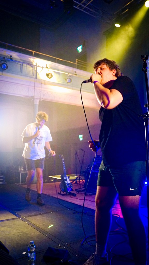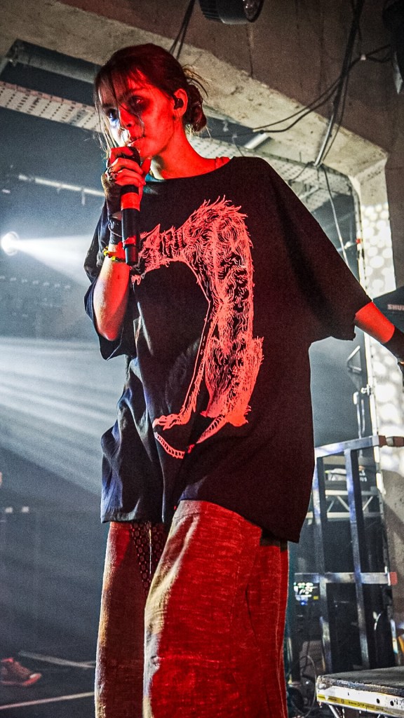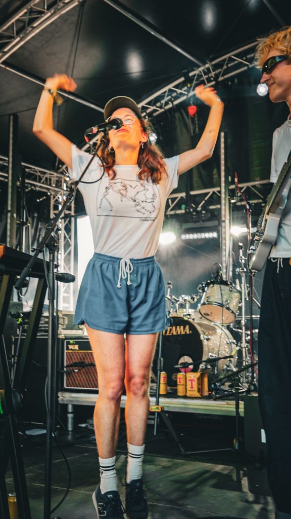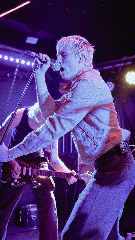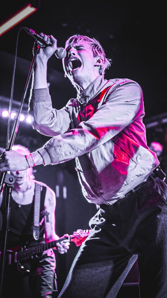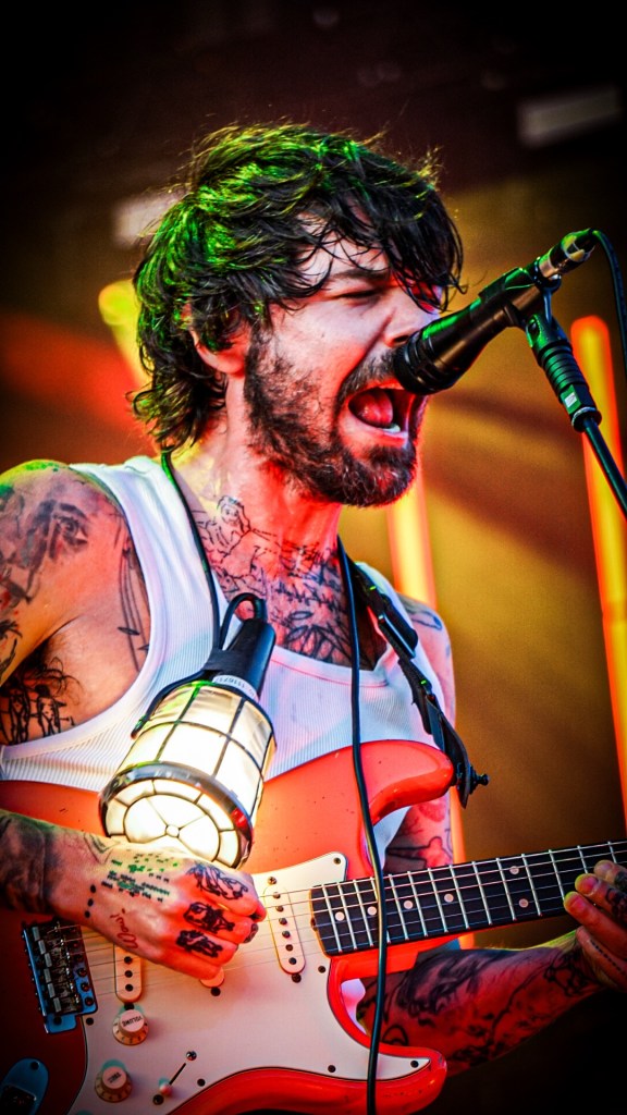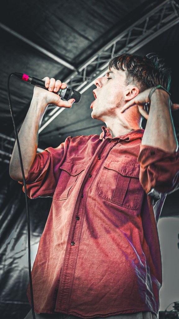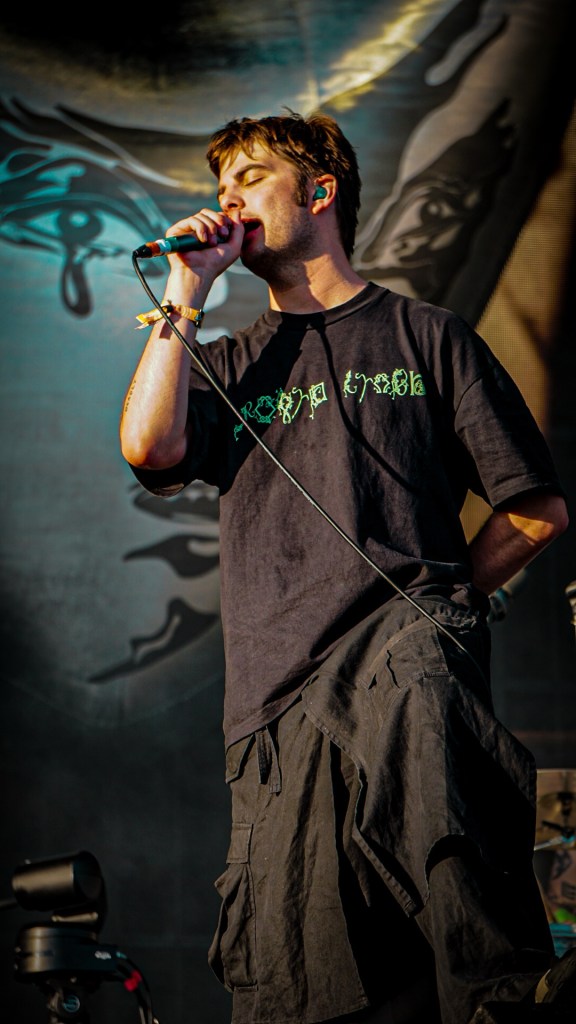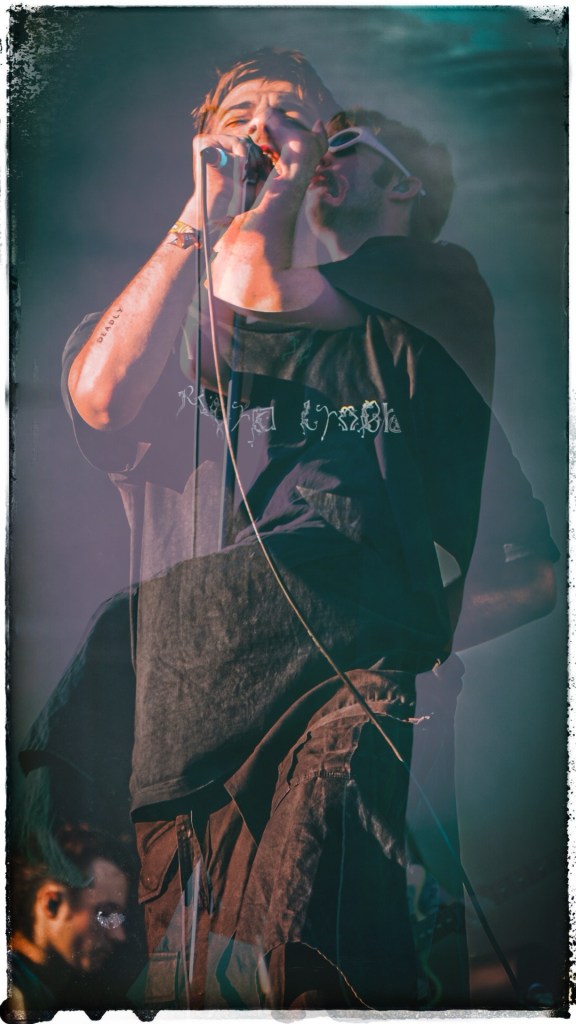 Then Deadletter exploded the night into fragments—frontman Zac Lawrence hurled himself shirt-bare into the crowd as though publicly jettisoning shame, turning the set into sweaty performance-art feral grandeur, like someone rewiring glam-rock with industrial sledgehammers. We’ve had our eyes on these North Yorkshire buys for some time but this performance is by far one of our standouts of the day. Tracks like “Mere Mortal” and “Madge’s Declaration” are strung out epistles on modern life and the grit of everyday grind.
