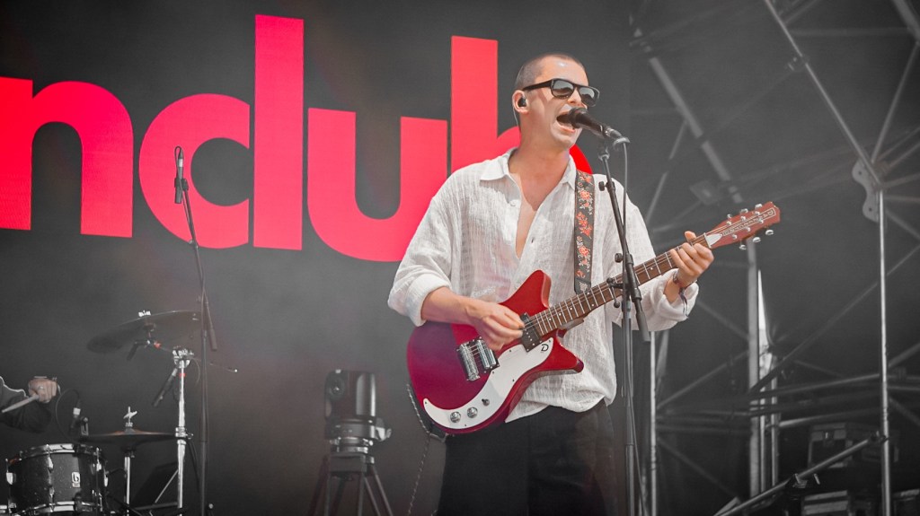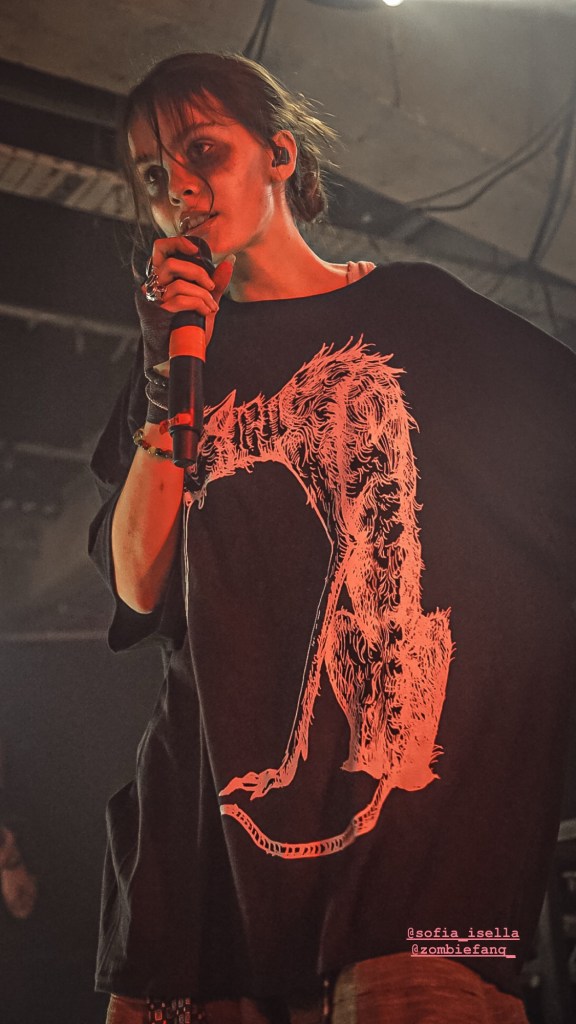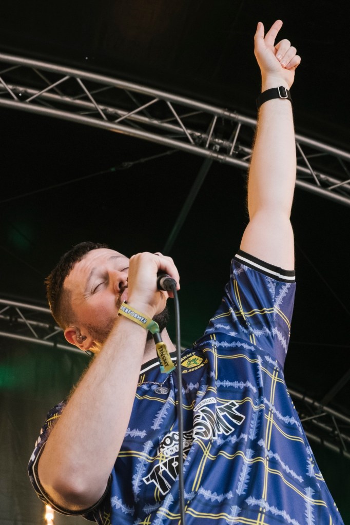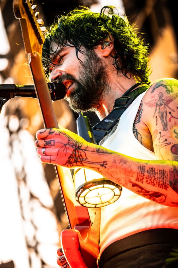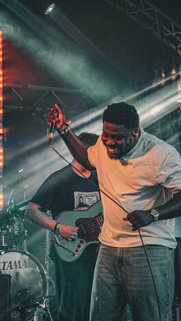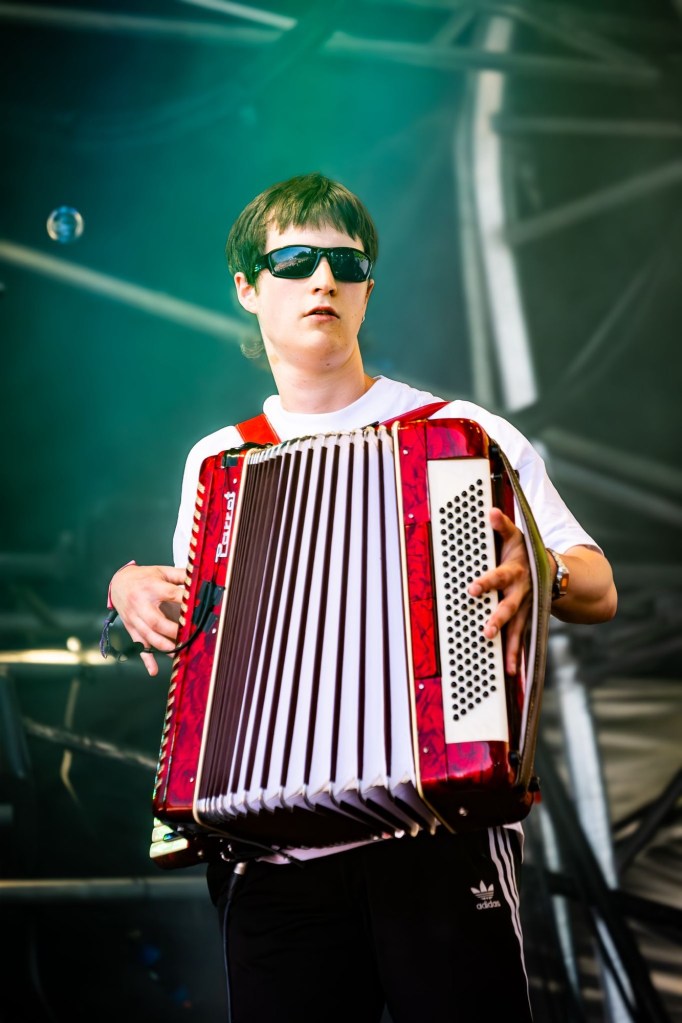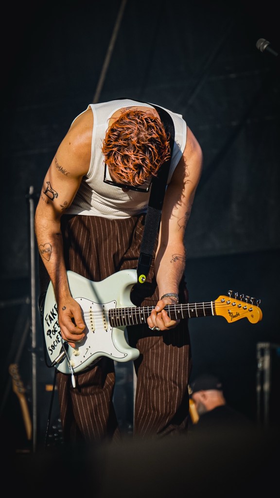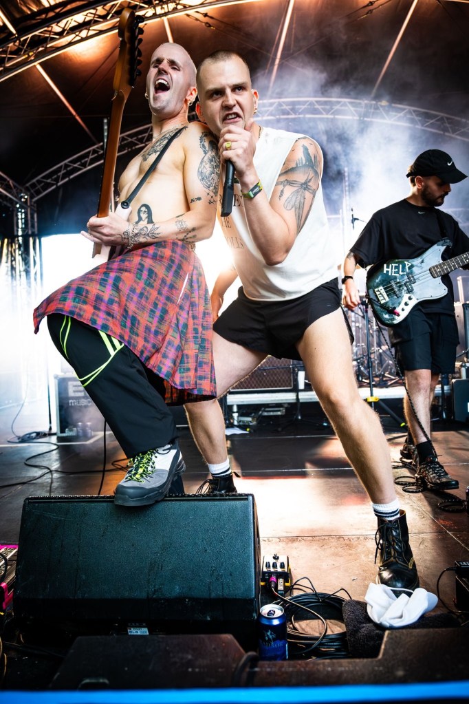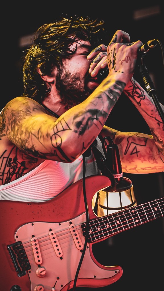 Then Deadletter exploded the night into fragments—frontman Zac Lawrence hurled himself shirt-bare into the crowd as though publicly jettisoning shame, turning the set into sweaty performance-art feral grandeur, like someone rewiring glam-rock with industrial sledgehammers. We’ve had our eyes on these North Yorkshire buys for some time but this performance is by far one of our standouts of the day. Tracks like “Mere Mortal” and “Madge’s Declaration” are strung out epistles on modern life and the grit of everyday grind.