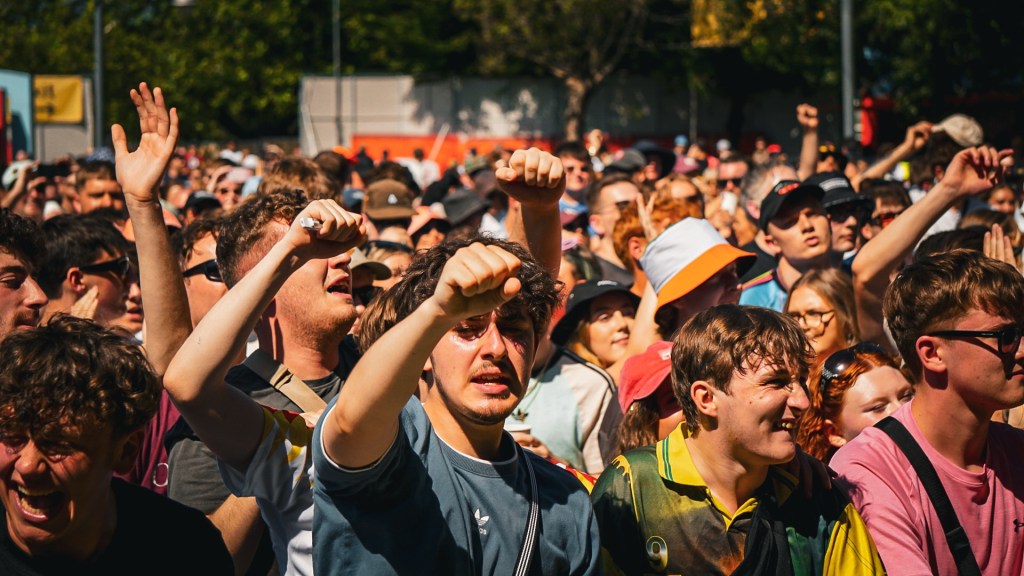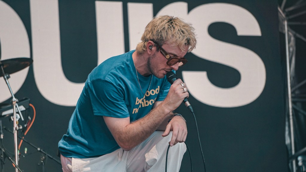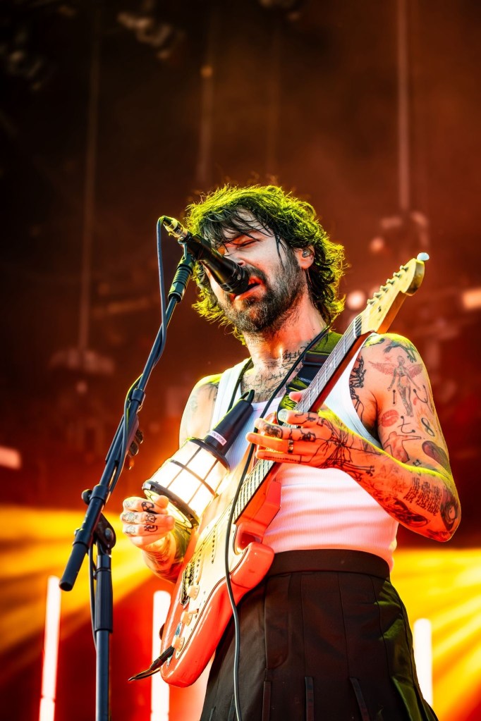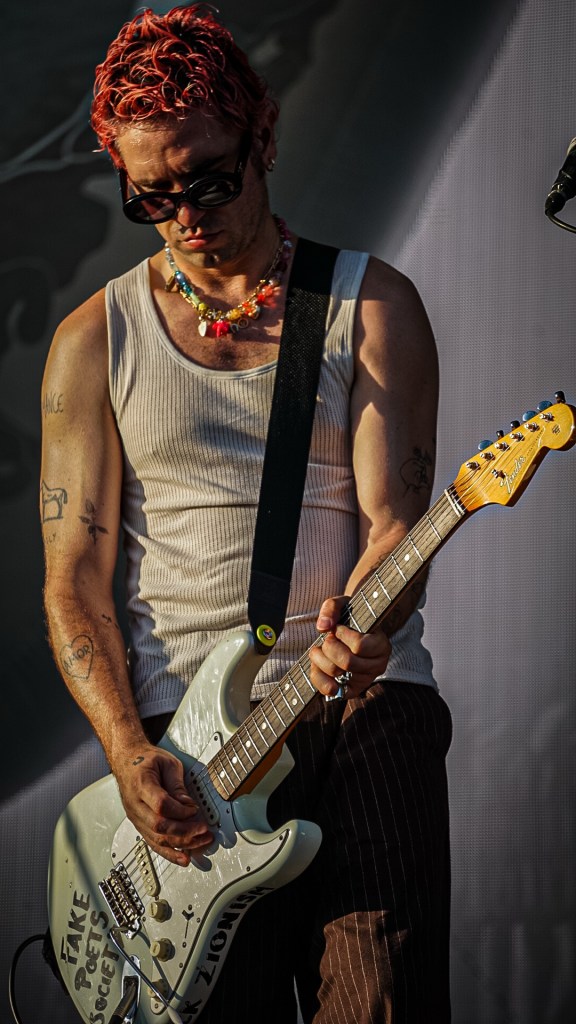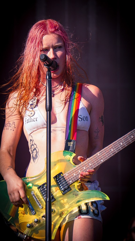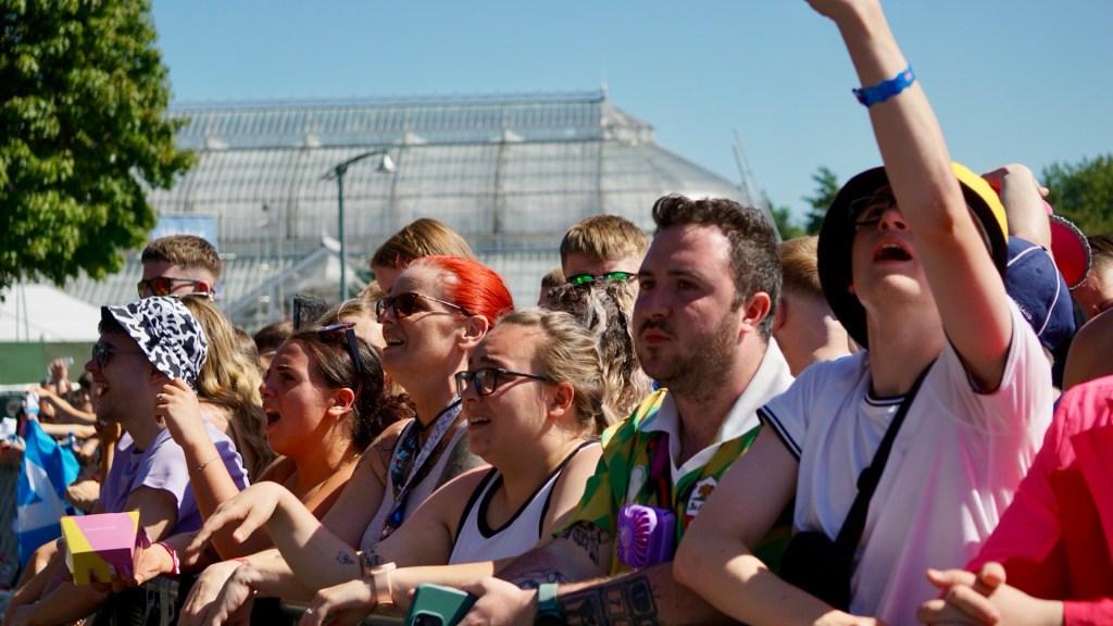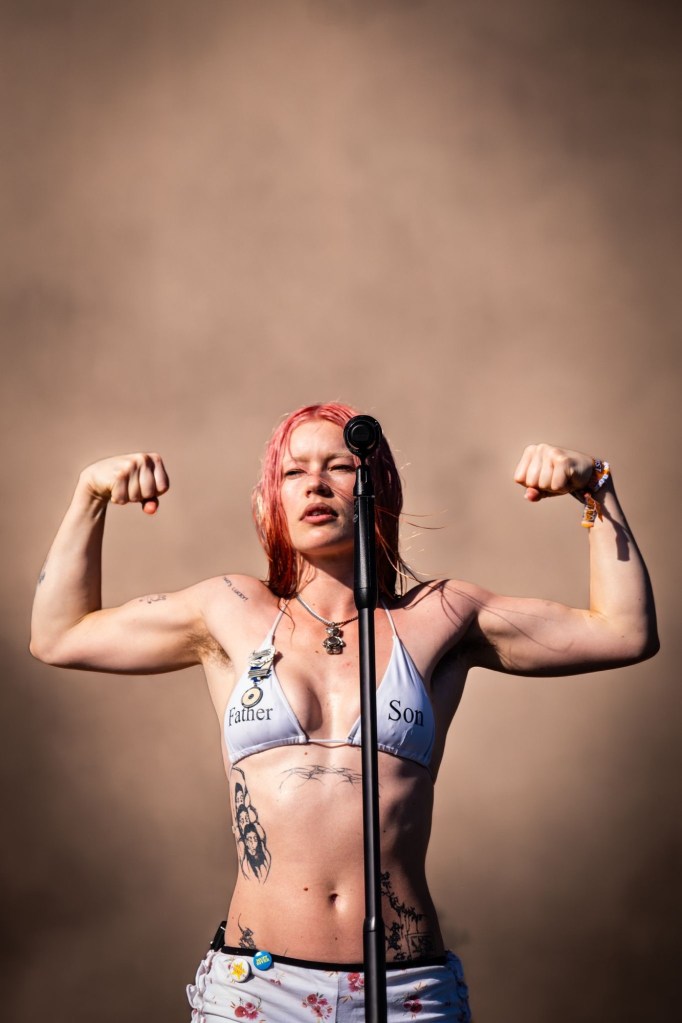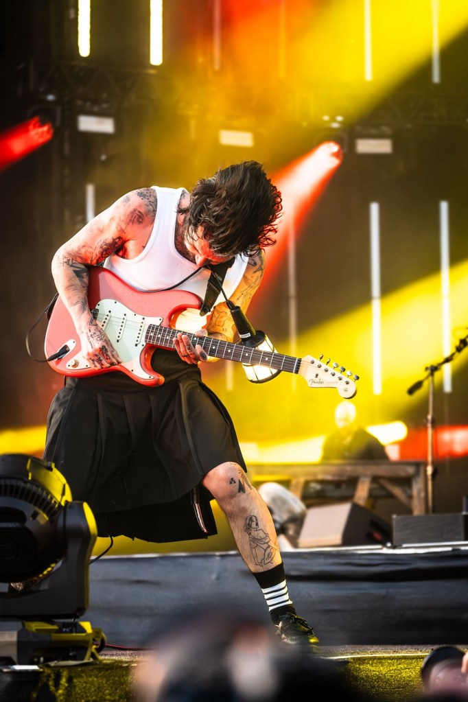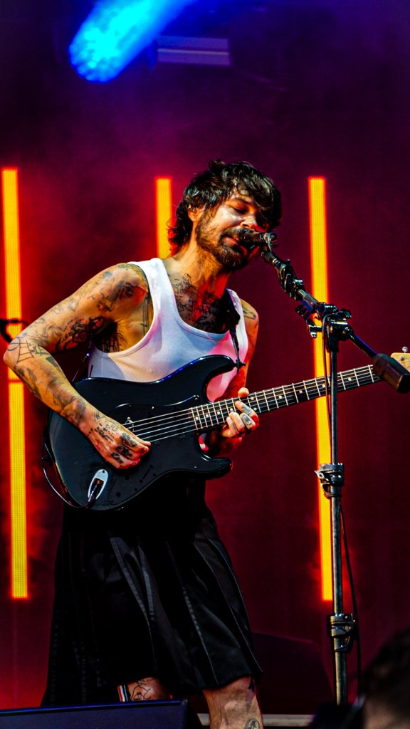 Then Deadletter exploded the night into fragments—frontman Zac Lawrence hurled himself shirt-bare into the crowd as though publicly jettisoning shame, turning the set into sweaty performance-art feral grandeur, like someone rewiring glam-rock with industrial sledgehammers. We’ve had our eyes on these North Yorkshire buys for some time but this performance is by far one of our standouts of the day. Tracks like “Mere Mortal” and “Madge’s Declaration” are strung out epistles on modern life and the grit of everyday grind.