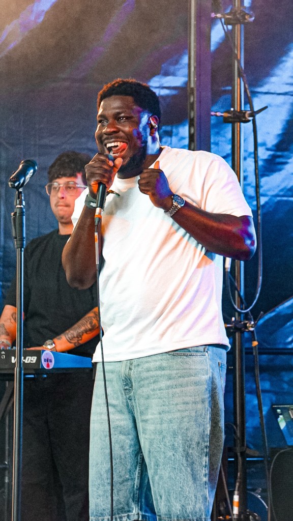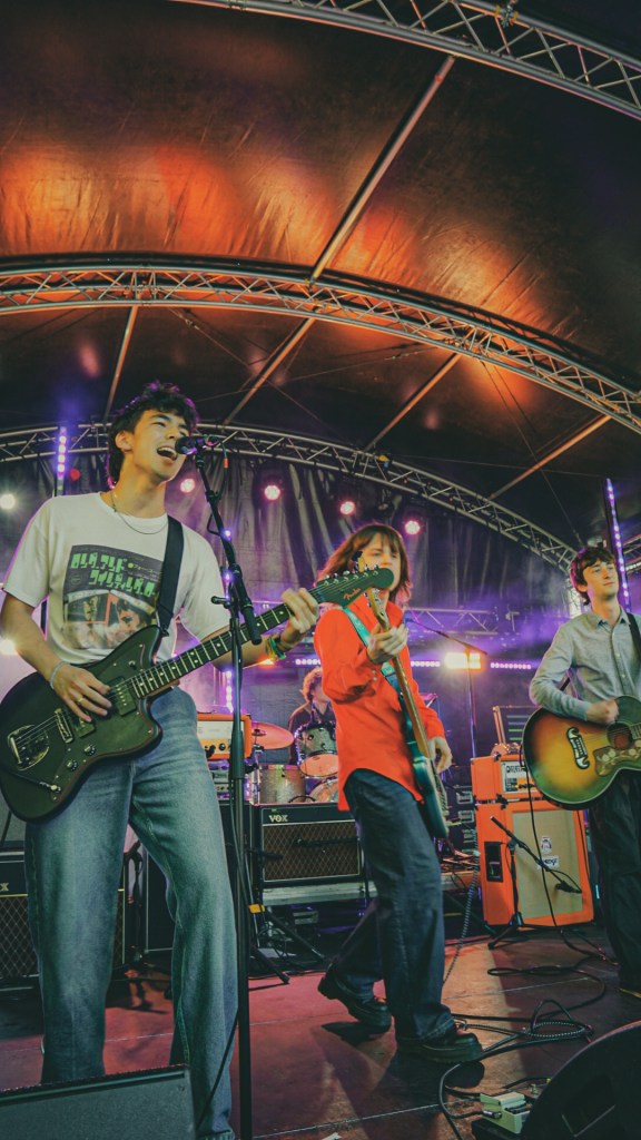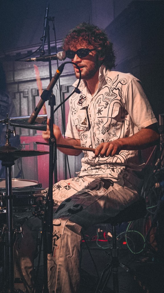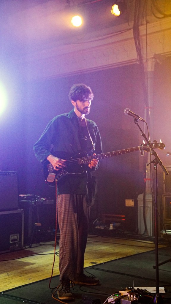 Swiss Portrait, rooted in Edinburgh, trod onto Summerhall’s Main Hall stage one member short—fresh from a baby’s birthing suite—but still managed to burn with the precision of barn-clockwork, each note wound tight and exact, even under duress; their simplicity felt defiant, like minimalism pushing back against chaos. With whimsical simplicity they held the crowd in the palms of their hands with each note. “Cassette” was our favourite track.
