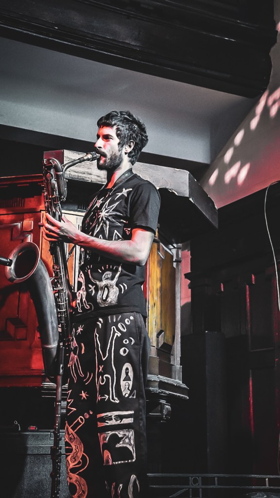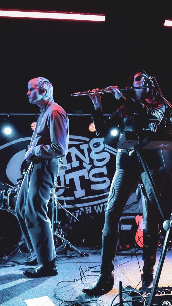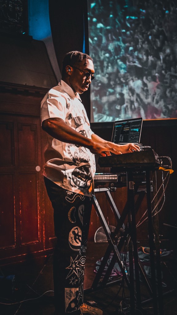 Heartworms followed at Queen’s Hall, the audience packed out the former church, conjuring a set that sounded like a haunted boarding school cassette recorder run through a ghost-factory—drum machines pulsating through spectral synth fog, the closer arriving like the last boss in a 90s video game—unsettling but utterly hypnotic. Not to mention some of the coolest playing of a theremin we’ve ever witnessed utterly spectacular. This combined with the spontaneous shadow dancing made for quite a dreamy show our favourite track was, “Jacked”