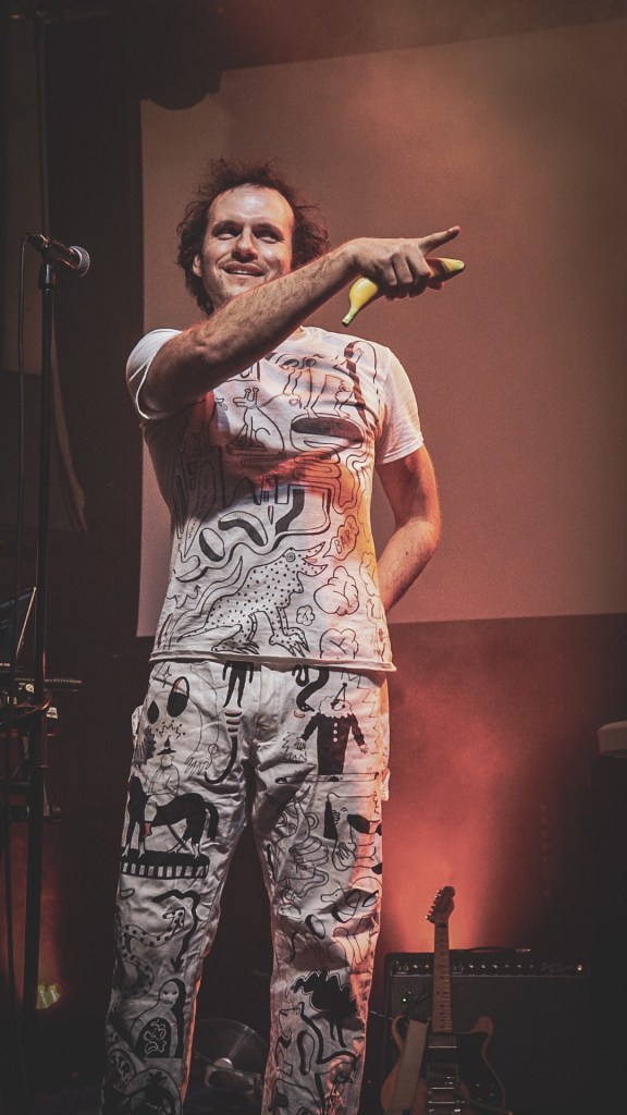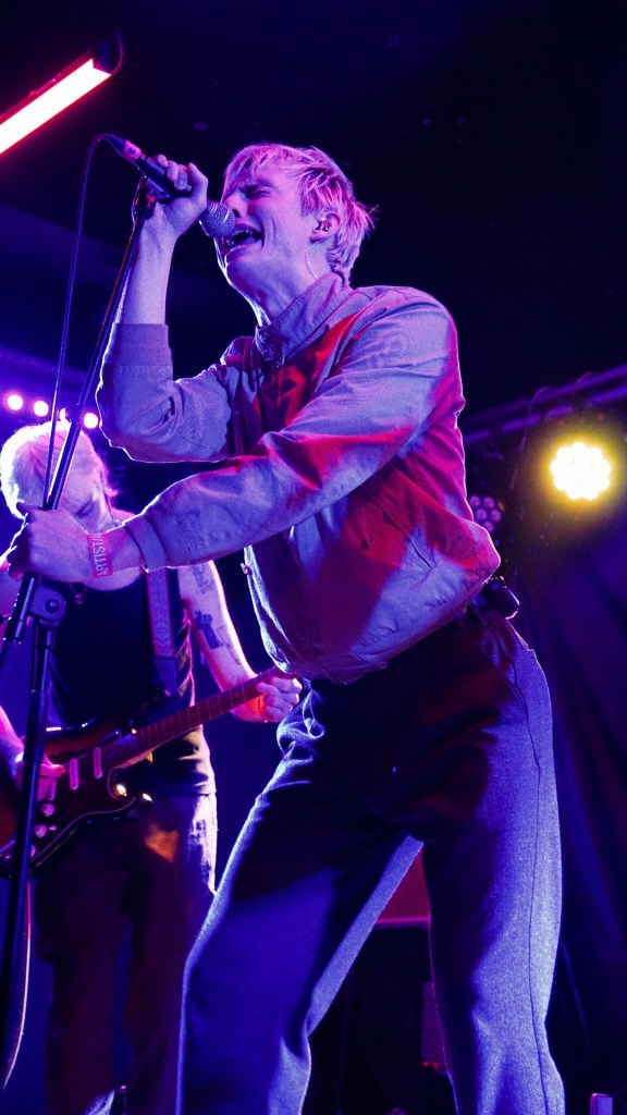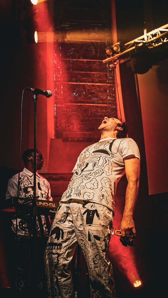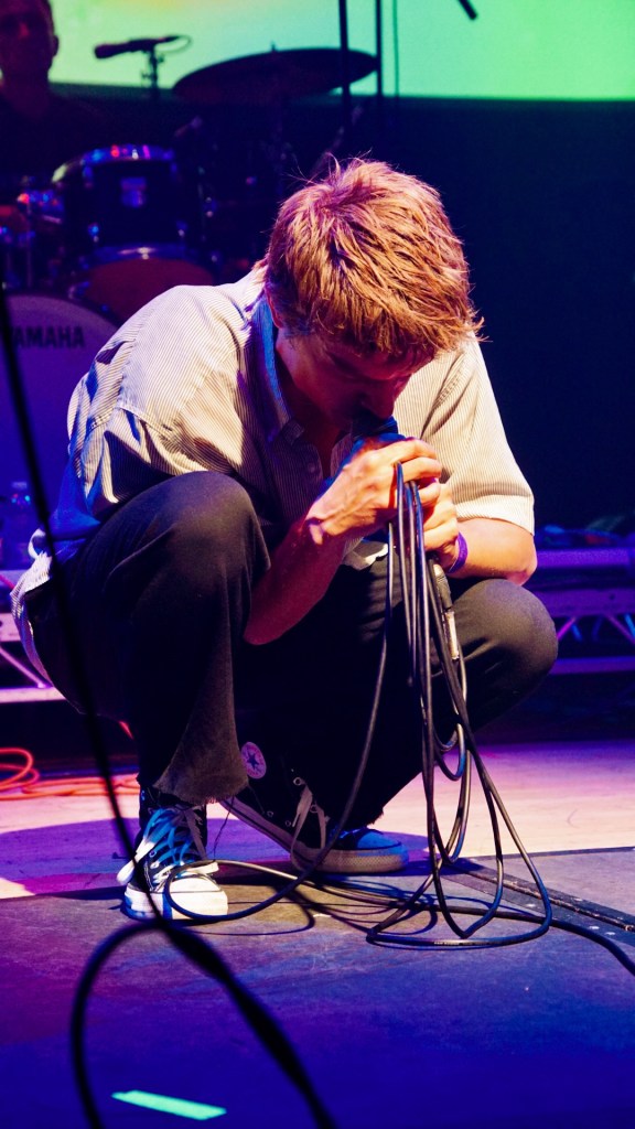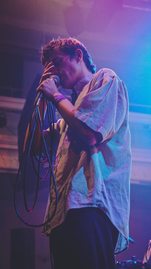 Getdown Services— burst on stage and firmly planted in the Queen’s Hall psyche—ushered in a (in the words of our friend” a “Butlins-style romp through some DMA’s sound at The Hacienda,” and the image nails it: plastered-bang-on-acid house riffs meet psych-pop swirl. Satire at its best tracks like; “Dog Dribble” it sounds like graffiti-bright, sticky-floored joy.