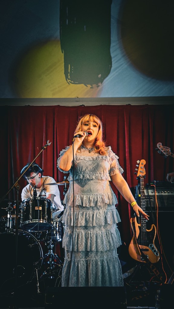 First up we head to the Main Hall where Linzi Clark, hailing from Edinburgh, unveils her set like an old Polaroid dissolving at the edges—her voice a gelid cascade of theatrical rustle and cello-polish, soaked in Kate Bush drama but with a tender, modern Americana undercurrent. When she conjured “Woot Woo,” the lone word looping in the vaulted space felt like some half-remembered lullaby suddenly lodged in your ear for eternity, the evening’s unofficial anthem of spectral heartbreak.
