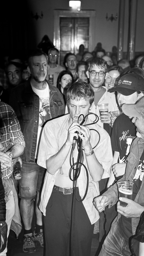 Over in the Dissection Room, Do Nothing appeared fifteen minutes late on stage after struggling to get their vocals amped up to the desired levels and rightly so as bands playing previously at times came across as barely audible. As if waiting for their moment to align with the room’s humidity, then unleashed a powerful set em yes with gritty new tracks like “Stars” and “Act Natural,” two new-wave shards polished until they gleamed like neon constellations reflected in rain-slick cobbles, affirming that standing your ground sometimes breeds brilliance.