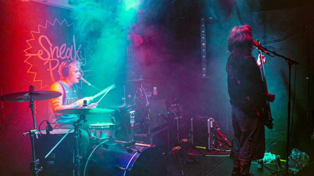 Twenty minutes later, we forced our way into Sneaky Pete’s for Glasgow’s own Cowboy Hunters, a two-piece punk dynamo (Megan Pollock and Desmond Johnston) raised on snark, slash-pop wrath, and pub-riot momentum. Their most-streamed Spotify thumper “Mating Calls” felt like a sideways punch—fiery, hilarious, impossible to shake—and when they launched into it live, the packed room convulsed with primal glee.